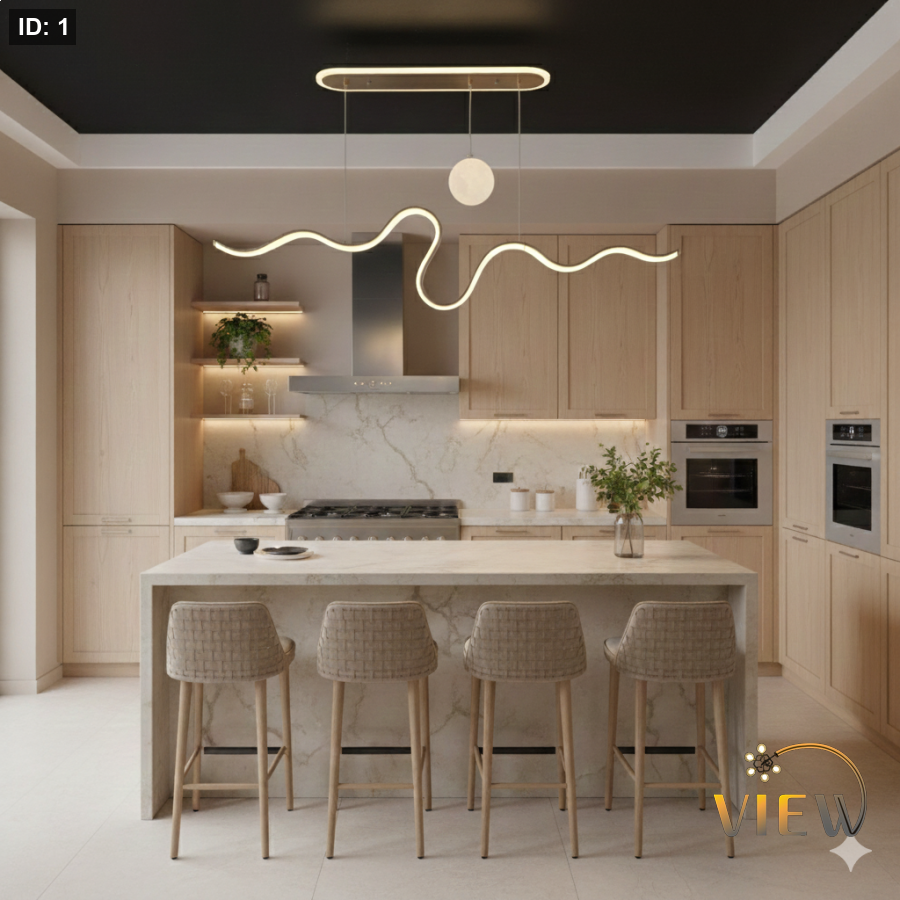ثريا عصرية تجمع بين الخطوط الانسيابية الناعمة والإضاءة الهادئة، بتصميم مبتكر على شكل تموّجات أنيقة تضيف لمسة فخامة لأي مساحة.