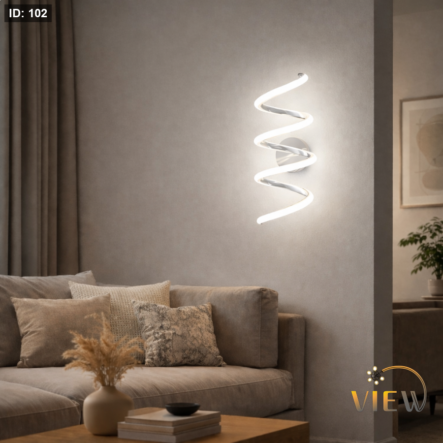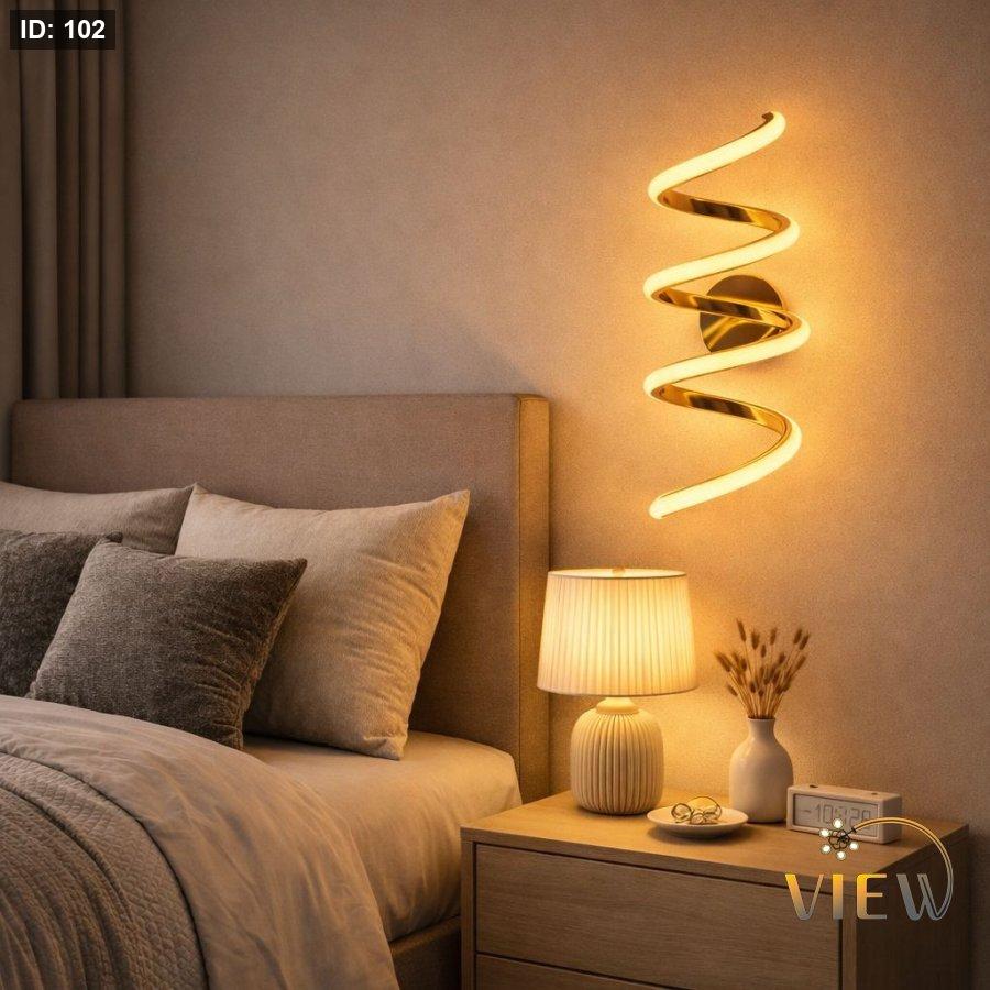 إنارة جدارية LED بتصميم حلزوني عصري، بعدة الوان (ذهبي , ابيض , اسود ) مع إضاءة 3 الوان اصفر/ابيض/كول تمنح المكان طابعاً مودرن وإضاءة مريحة وواضحة، تجمع بين الجمال والعملية وتضفي لمسة فنية على الجدار.