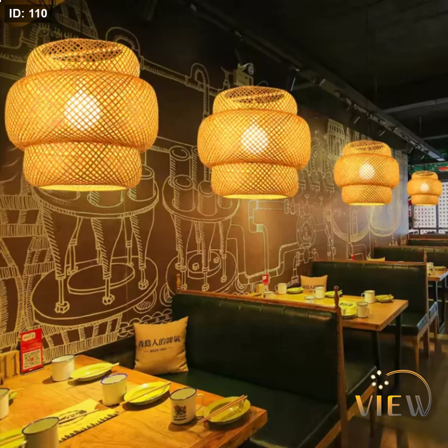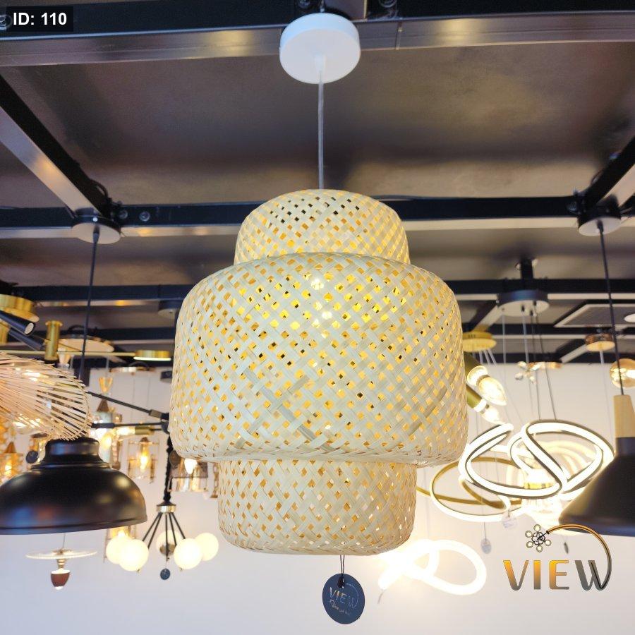 ثريا معلّقة بتصميم منسوج على شكل طبقات دائرية متناسقة، تنشر الإضاءة الدافئة بشكل ناعم ومتوازن، وتمنح المكان إحساسًا بالراحة والأناقة بطابع طبيعي عصري. مثالية للمساحات التي تجمع بين البساطة والدفء.