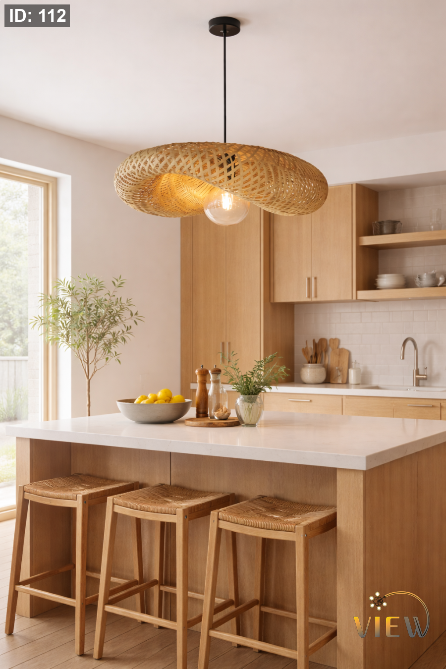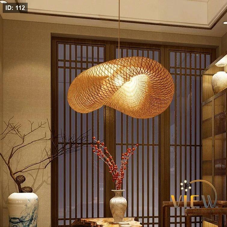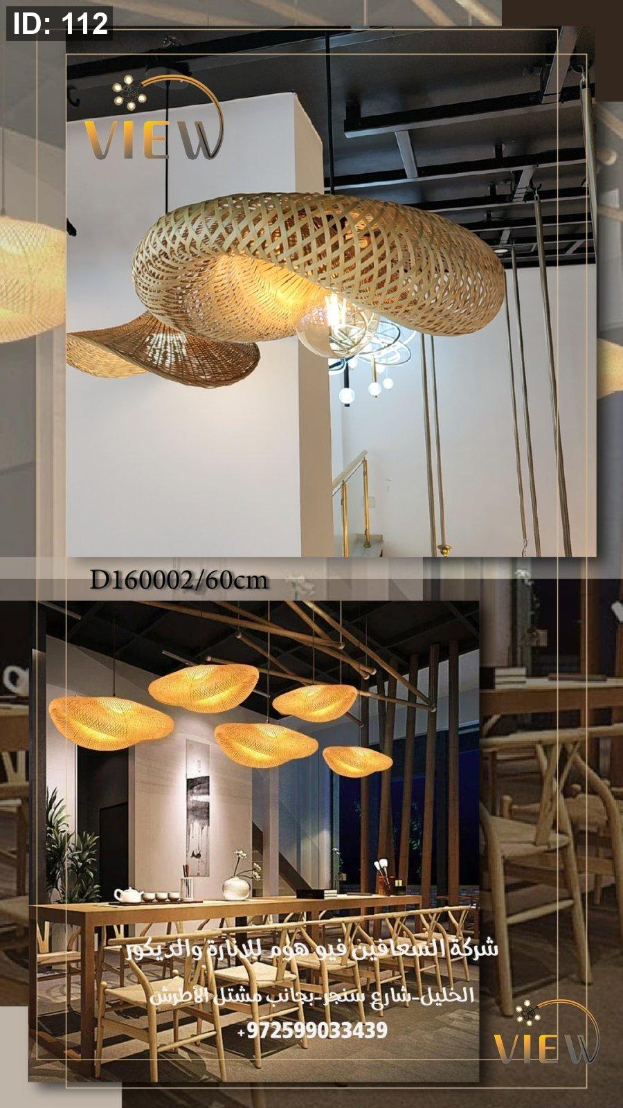 إنارة معلّقة بتصميم منسوج دائري يُشبه الطاقيّة، مصنوعة من خامات طبيعية تنشر الإضاءة الدافئة بشكل ناعم ومريح. قطعة ديكور تضيف دفئًا وأناقة بسيطة للمكان بطابع عصري طبيعي.