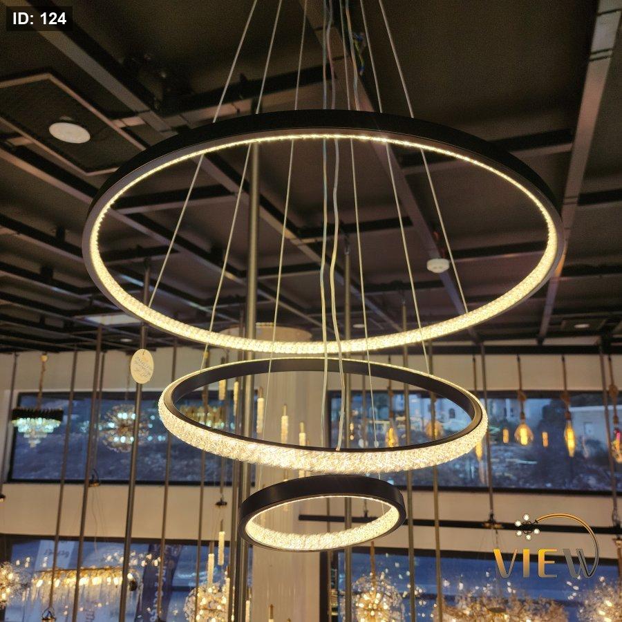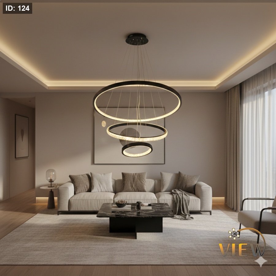 ثريا LED عصرية بتصميم حلقي متدرّج يخلق إحساسًا بالحركة والعمق، مزوّدة بإضاءة ناعمة ودافئة تبرز التفاصيل الكريستالية وتمنح المكان فخامة هادئة. تصميمها المتوازن يجعلها قطعة ديكور لافتة دون مبالغة، وتنسجم مع المساحات الحديثة بسهولة.