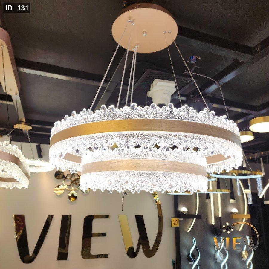 ثريا فاخرة بتصميم دائري متدرّج يجمع بين الطبقات المتناسقة وبريق الكريستال المتلألئ، لتمنح إضاءة صفراء دافئة تعكس إحساسًا بالرقي والترف. تصميمها المتوازن يجعلها قطعة مركزية ترفع مستوى الديكور وتضفي حضورًا ملكيًا أنيقًا دون مبالغة.