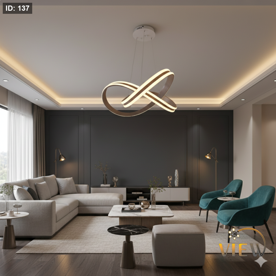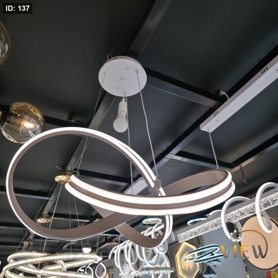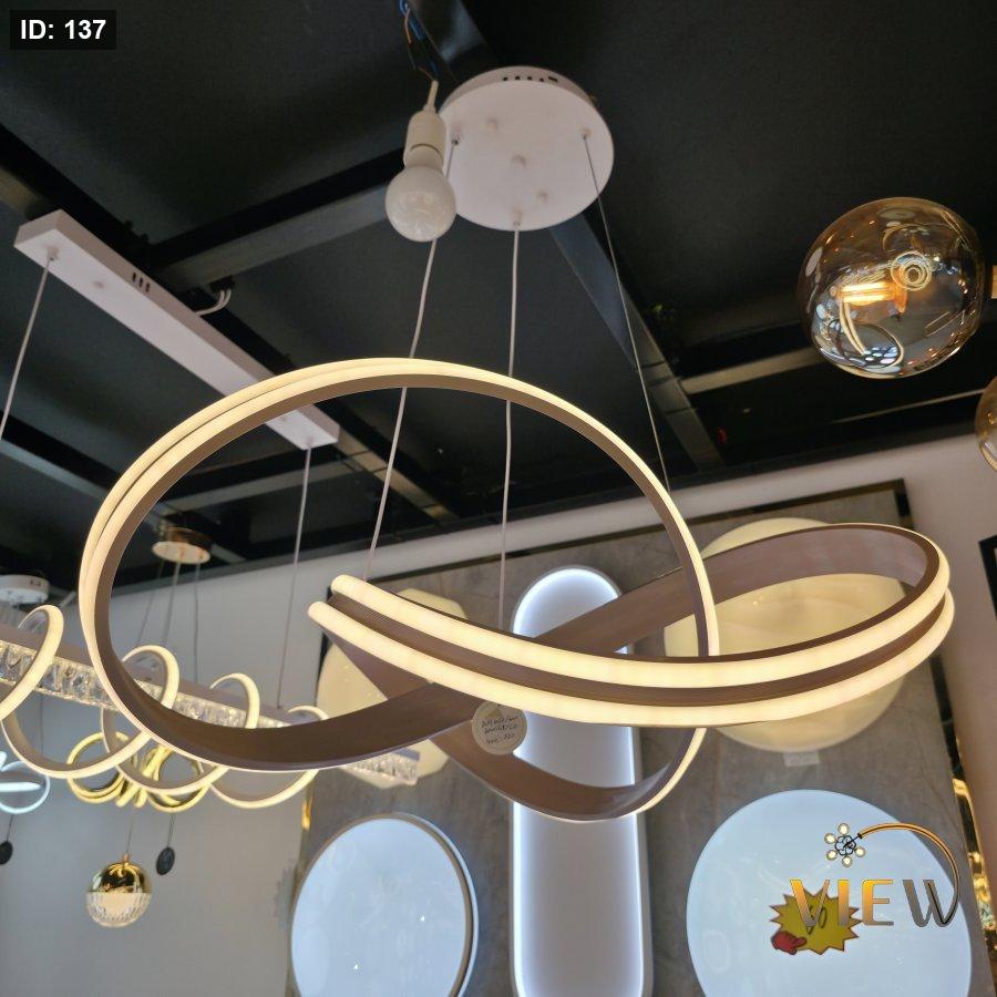 ثريا مودرن بتصميم حلقي انسيابي يجمع بين دفء الخشب وأناقة الإضاءة العصرية. تتكوّن من حلقات LED متداخلة بانحناءات ناعمة تعكس إحساس الحركة والهدوء، مع تشطيب أنيق يضفي لمسة طبيعية راقية على المكان.