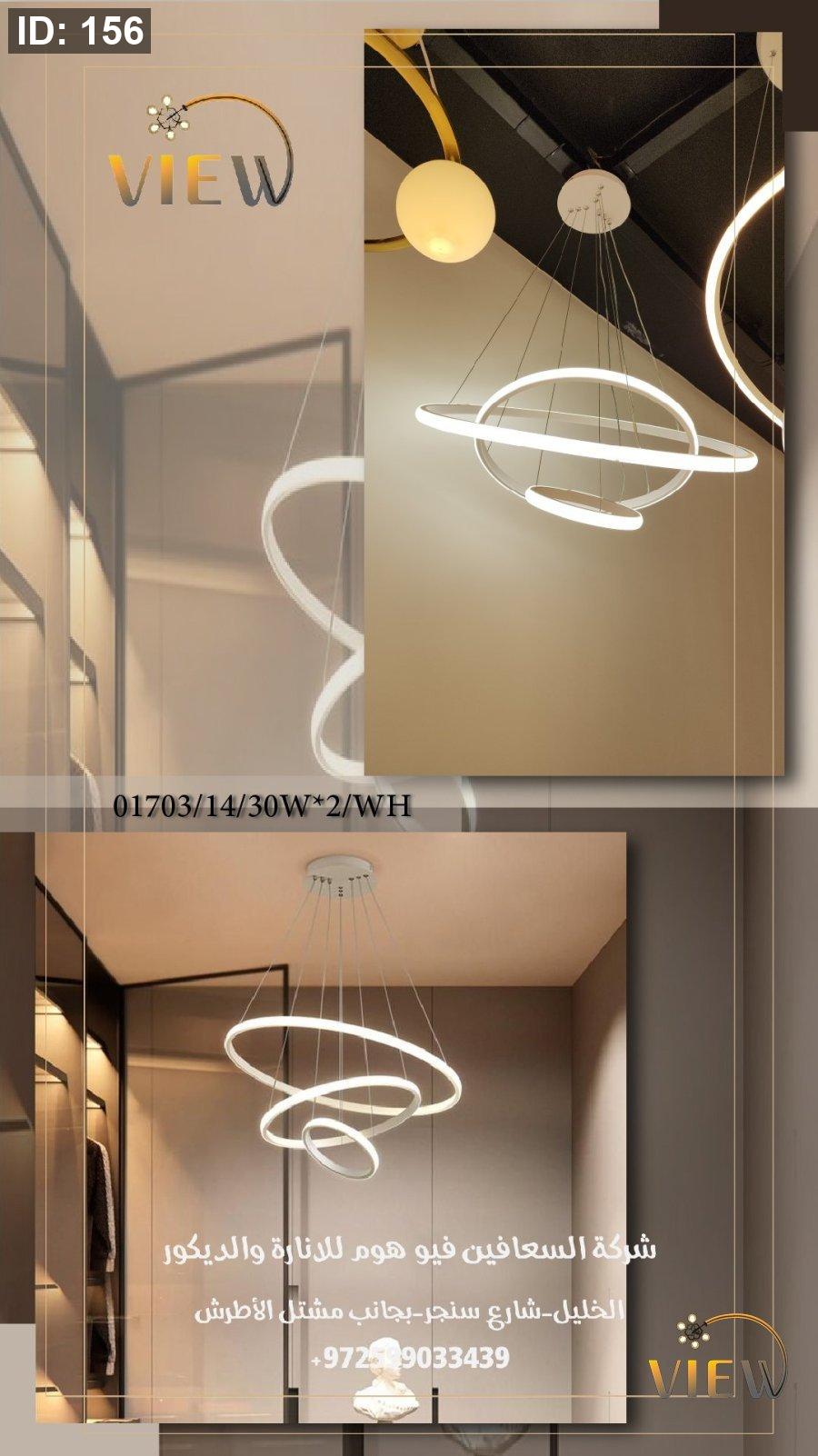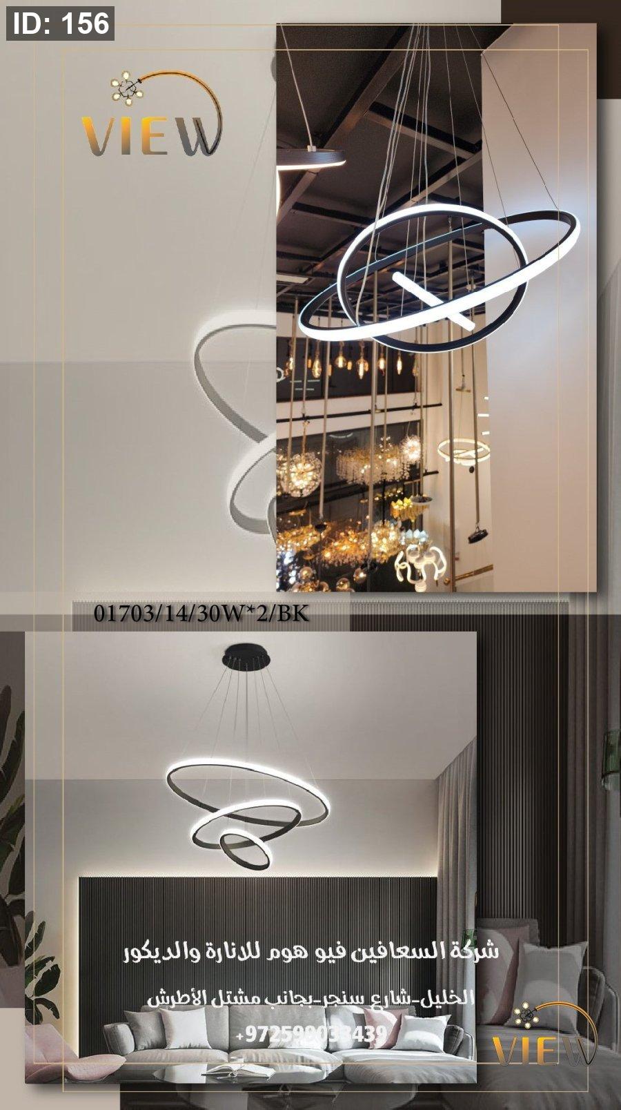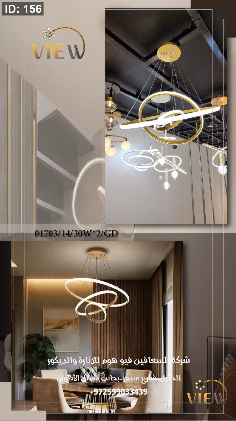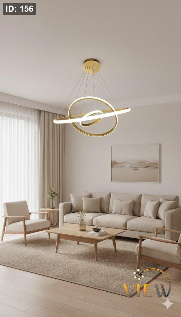 ثريا حلقات النور بتصميم عصري من حلقات LED متداخلة، تمنح المكان إضاءة ناعمة ومتوازنة مع لمسة فنية أنيقة تضيف دفئاً وفخامة للمساحة.
