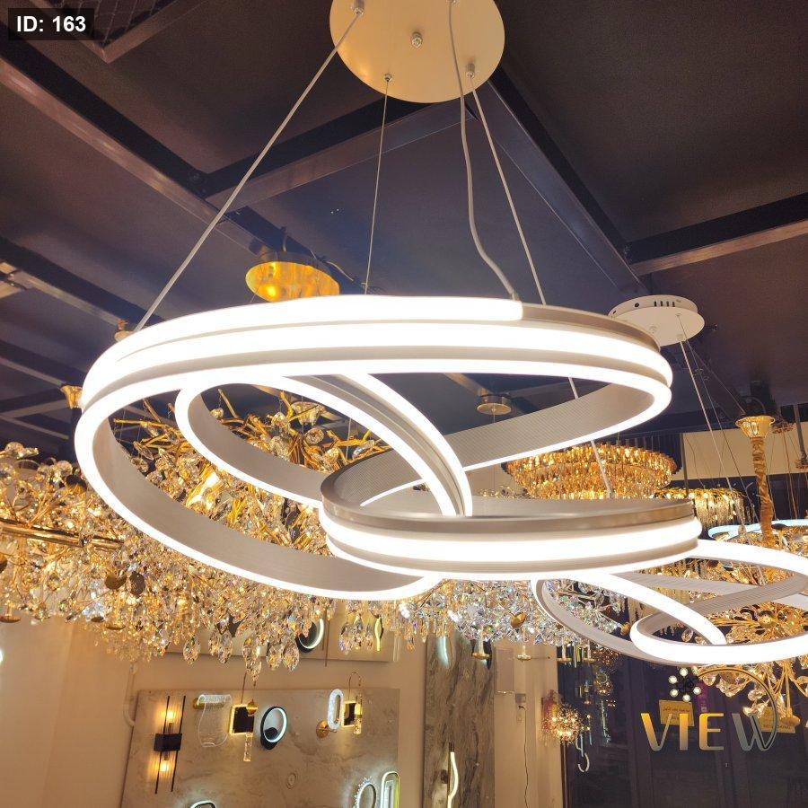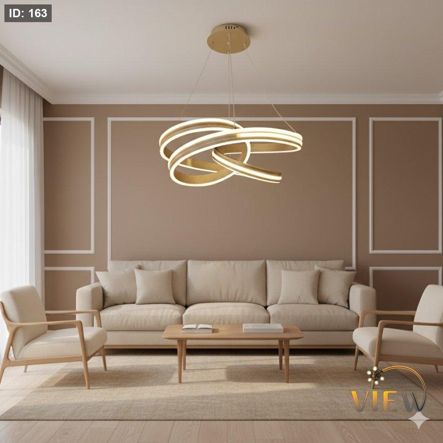 ثريا بتصميم عصري يعتمد على مسارات LED متداخلة تنسجم بحركة انسيابية متوازنة، تمنح السقف حضوراً فنياً واضحاً دون ازدحام بصري. إضاءتها دافئة وموزعة بسلاسة، تضيف عمقاً وأناقة للمكان، لتكون قطعة إضاءة ديكورية مثالية للمساحات الحديثة التي تبحث عن التميّز والبساطة في آنٍ واحد.