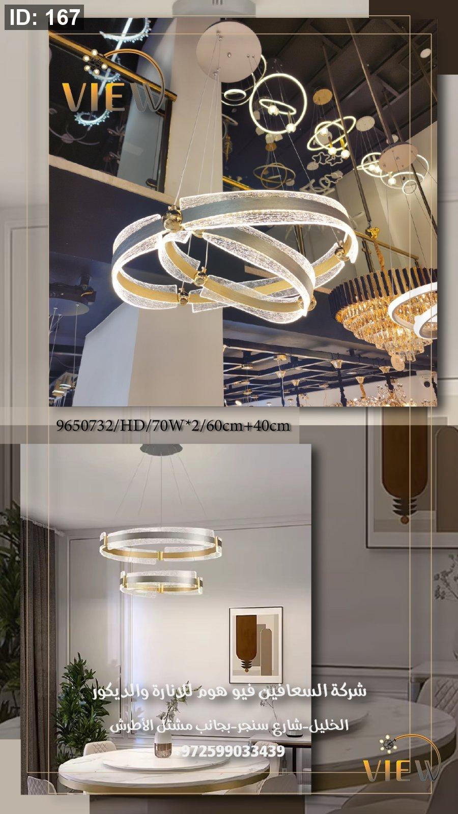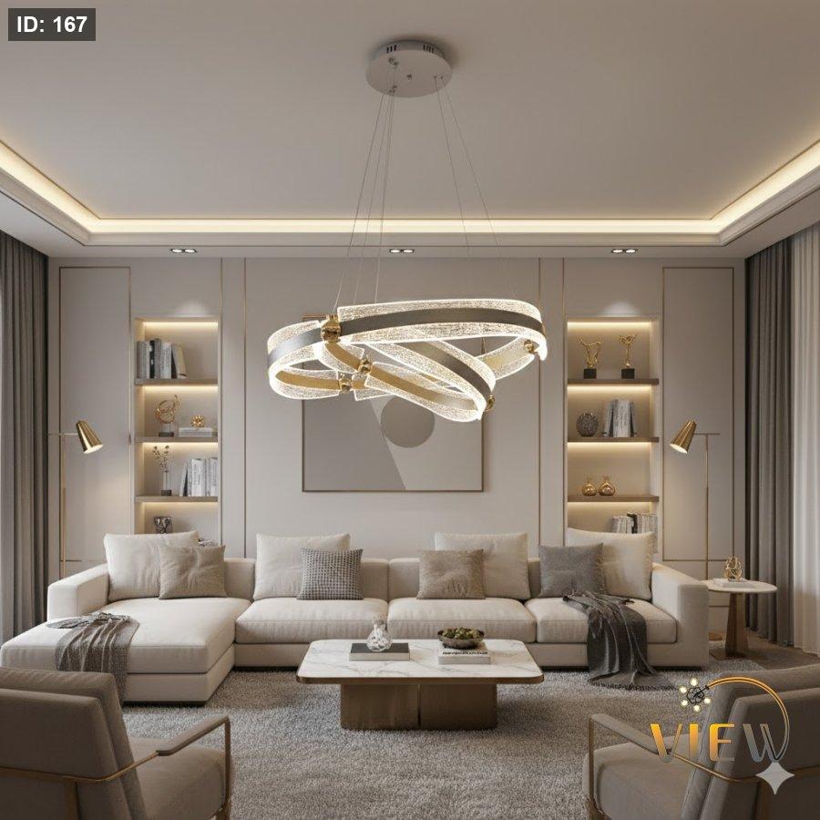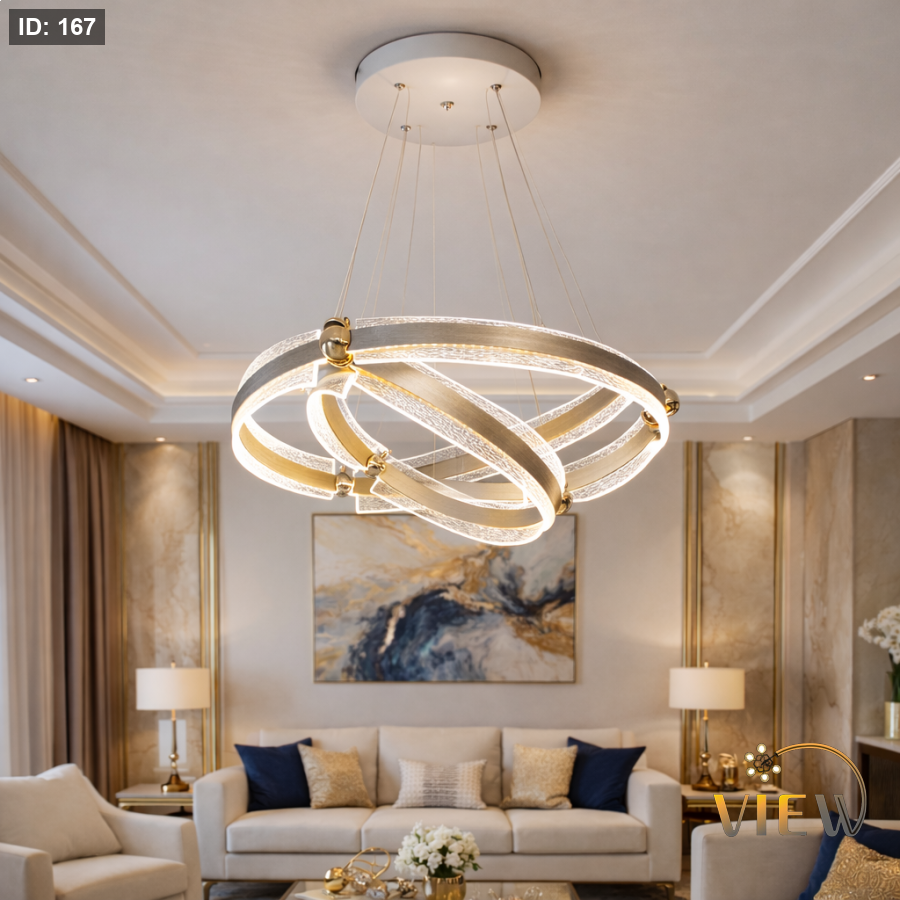 ثريا إكليل تجمع بين التصميم العصري والفخامة الراقية، بحلقات LED متداخلة تنساب بتناغم لتشكّل قطعة فنية مضيئة.