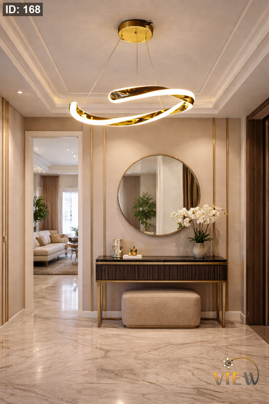 انحناءاتها الناعمة مع التشطيب الذهبي العاكس تمنح الإضاءة حضورًا أنيقًا دون مبالغة، لتكون قطعة ديكور عصرية تضيف شخصية مميزة للمكان وتنسجم مع التصاميم الحديثة والفاخرة.