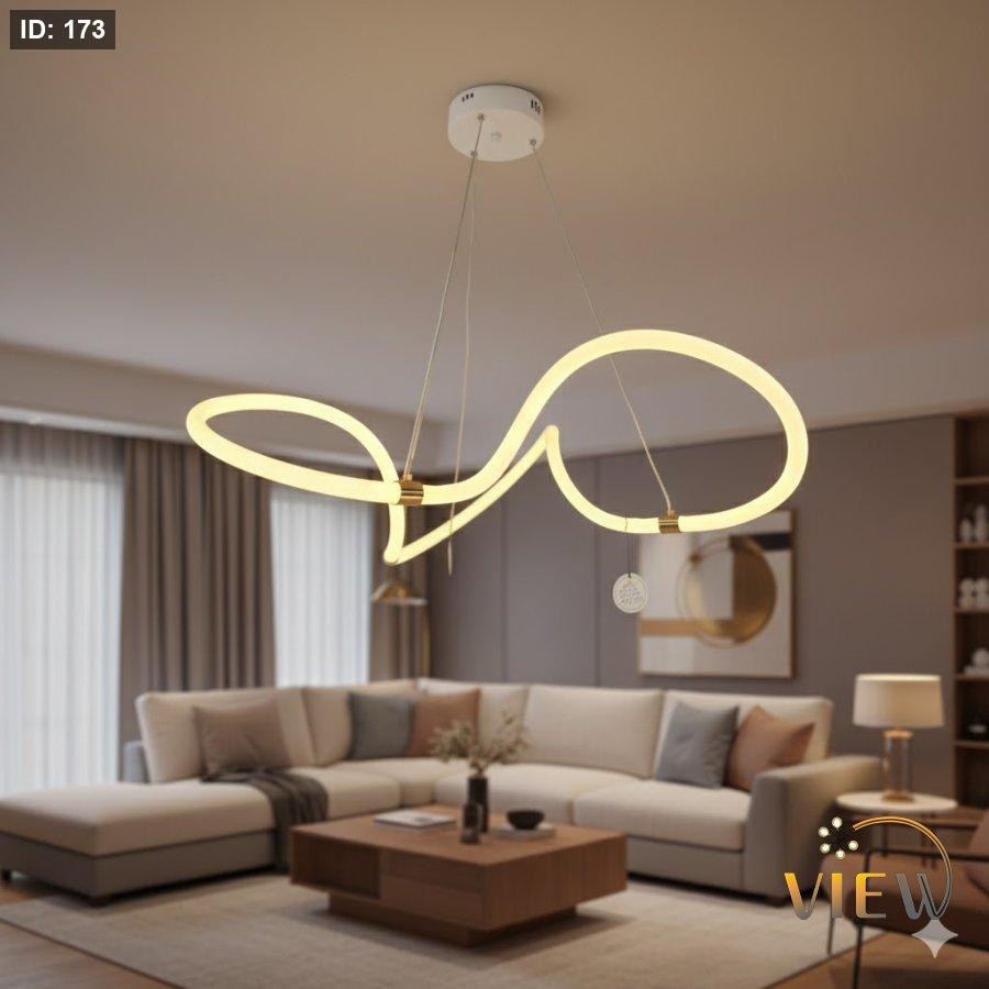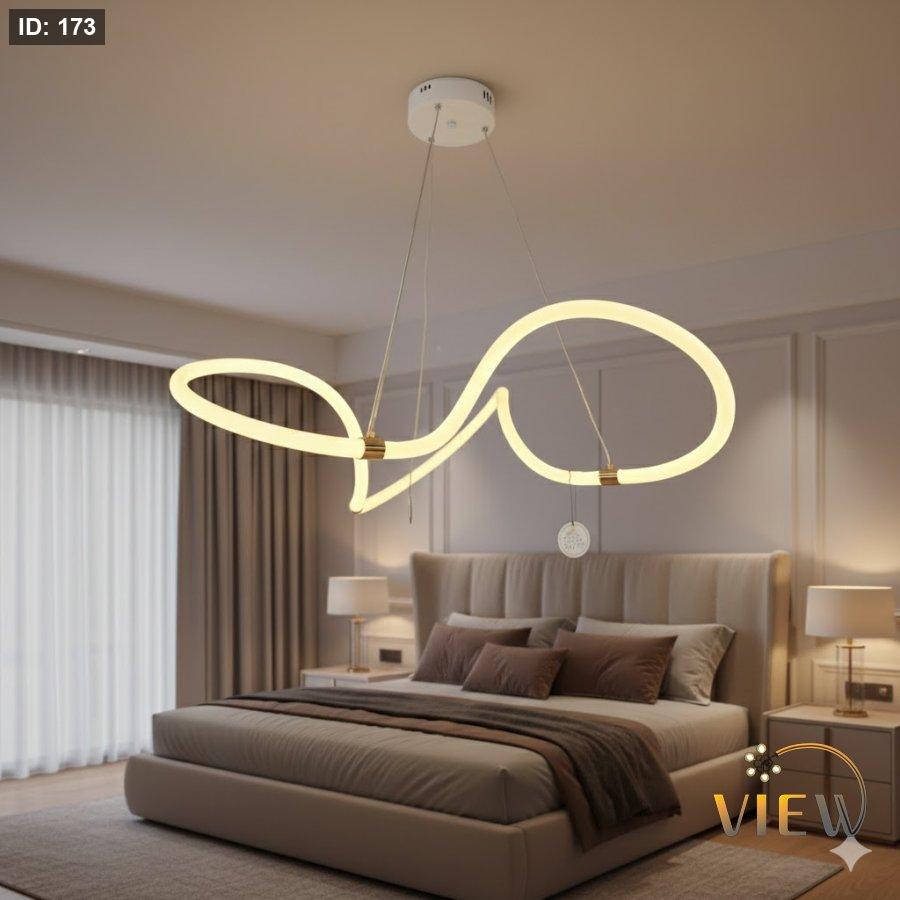 ثريا عِقد الضوء بتصميم انسيابي يشبه قطعة مجوهرات مضيئة، تلتف بخفّة لتمنح المكان لمسة فنية راقية.