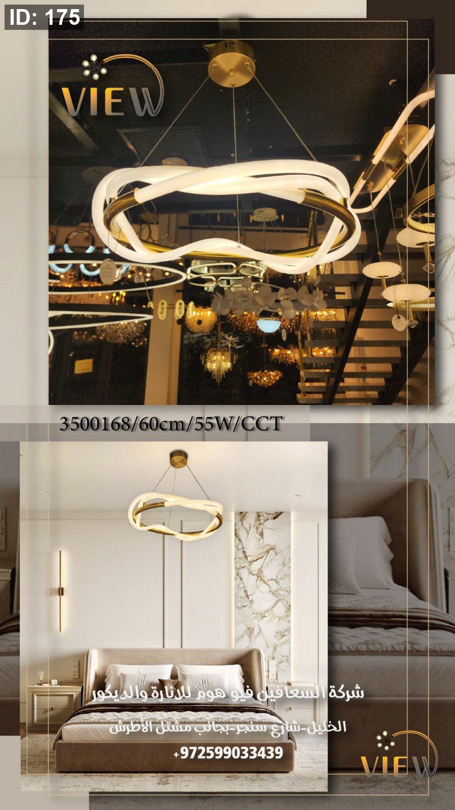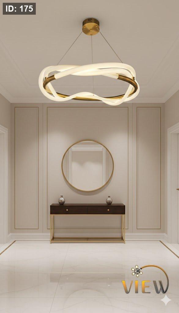 ثريا رِباط بتصميم انسيابي يشبه شريطًا مضيئًا ملتفًا، تجمع بين البساطة العصرية واللمسة الذهبية الراقية.