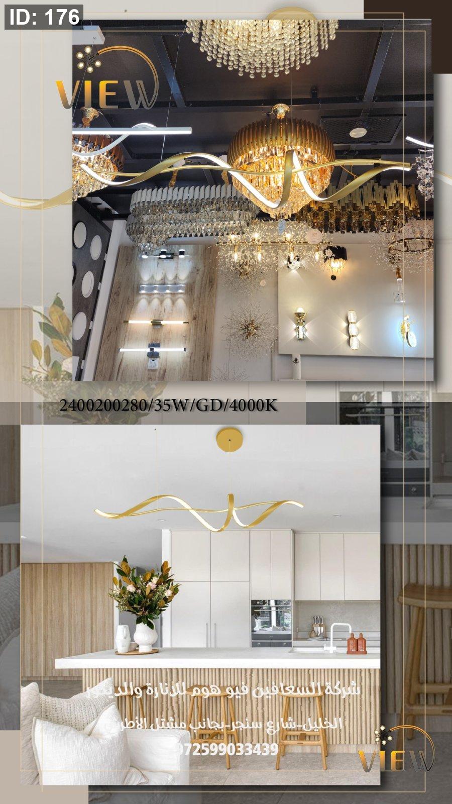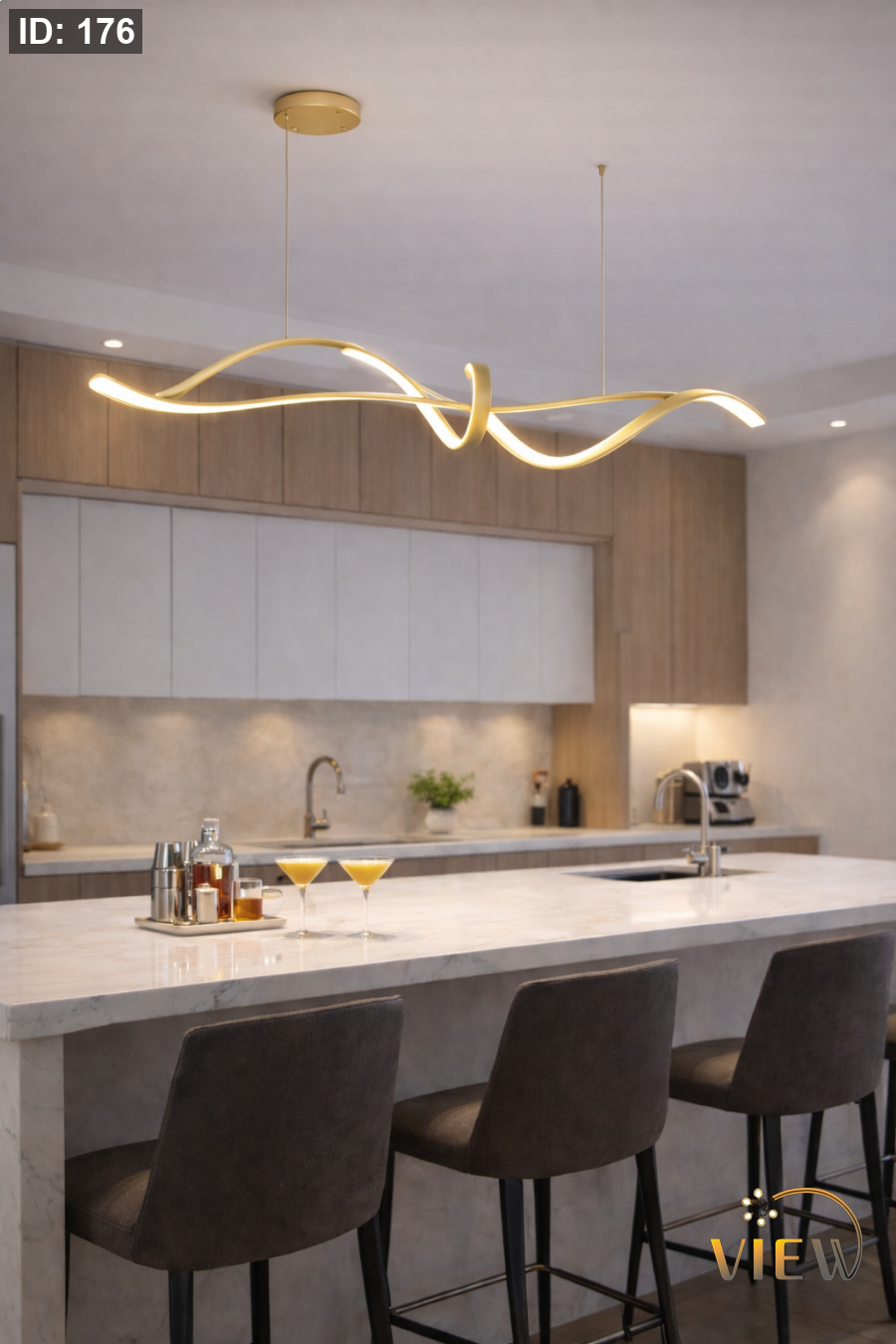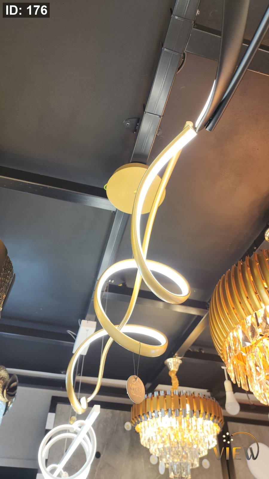 ثريا مودرن بتصميم انسيابي متماوج، تجمع بين البساطة والفخامة. لونها الذهبي الدافئ يعكس الضوء بنعومة ليمنح المكان إحساسًا راقيًا وحيويًا، وكأن النور مرسوم بحركة فنية في الهواء. قطعة مثالية لعشّاق الذوق العصري الهادئ.