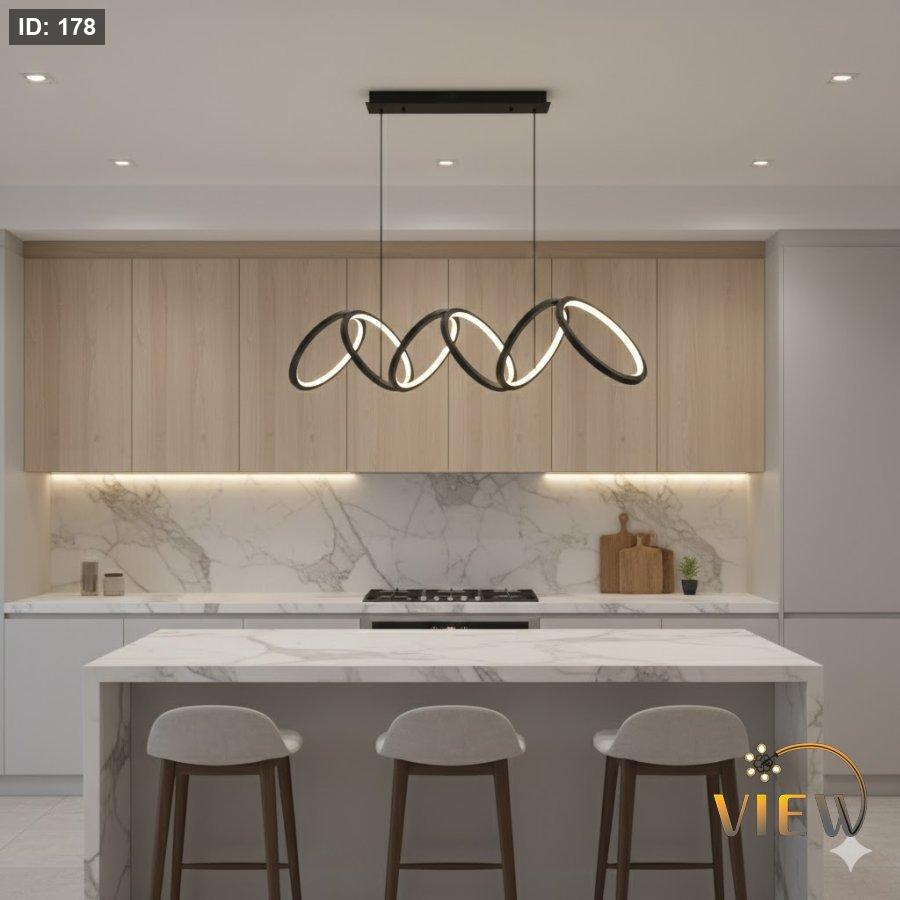 ثريا مودرن بتصميم حلقات متتابعة تنساب بتناغم بصري جذّاب، تجمع بين الجرأة والبساطة في آنٍ واحد. اللون الأسود يمنحها طابعًا معاصرًا قويًا، بينما الإضاءة الداخلية الناعمة تخلق توازنًا مثاليًا بين الديكور والوظيفة. قطعة فنية تلفت النظر دون مبالغة، وتضيف عمقًا وأناقة لأي مساحة توضع فيها.