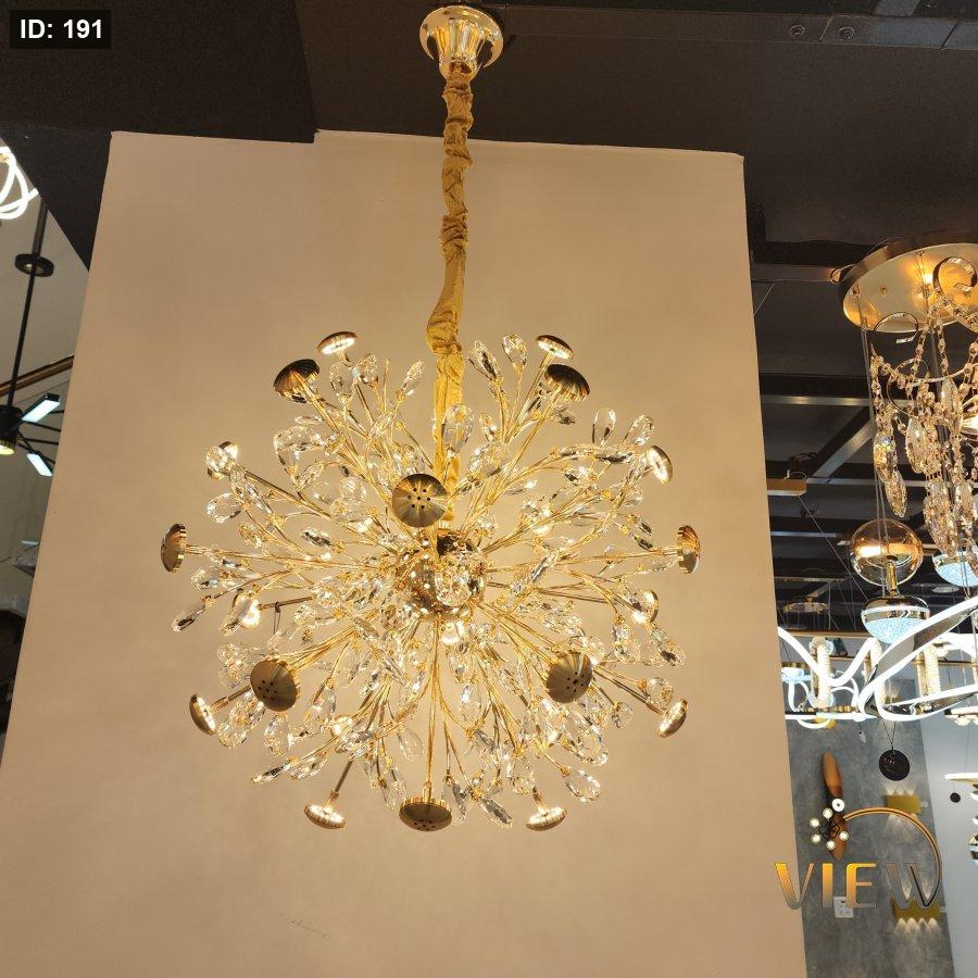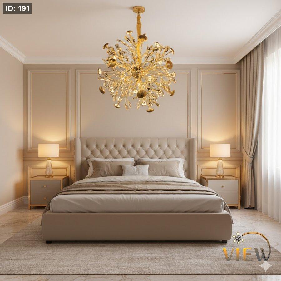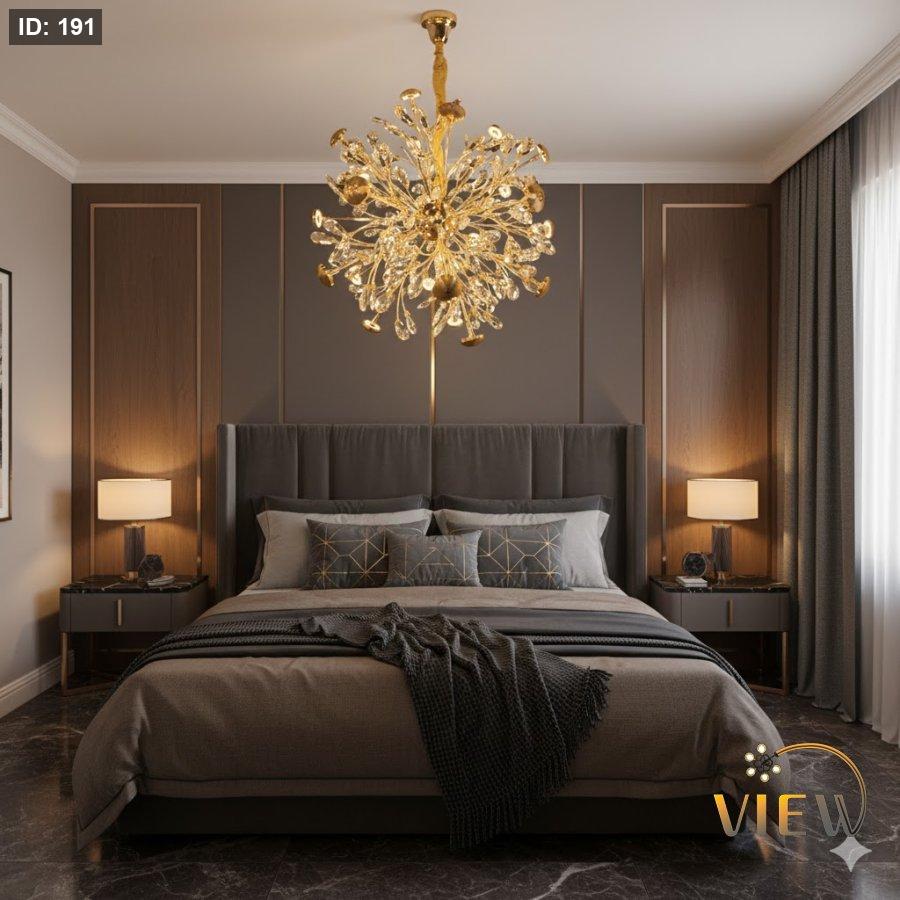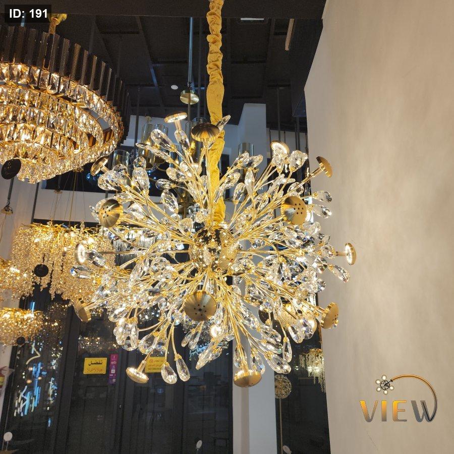 يعكس كل كريستال الضوء بطريقة ناعمة ومبهرة، مما يخلق توهجاً فاخراً يضيف عمقاً وحياة للمساحة.