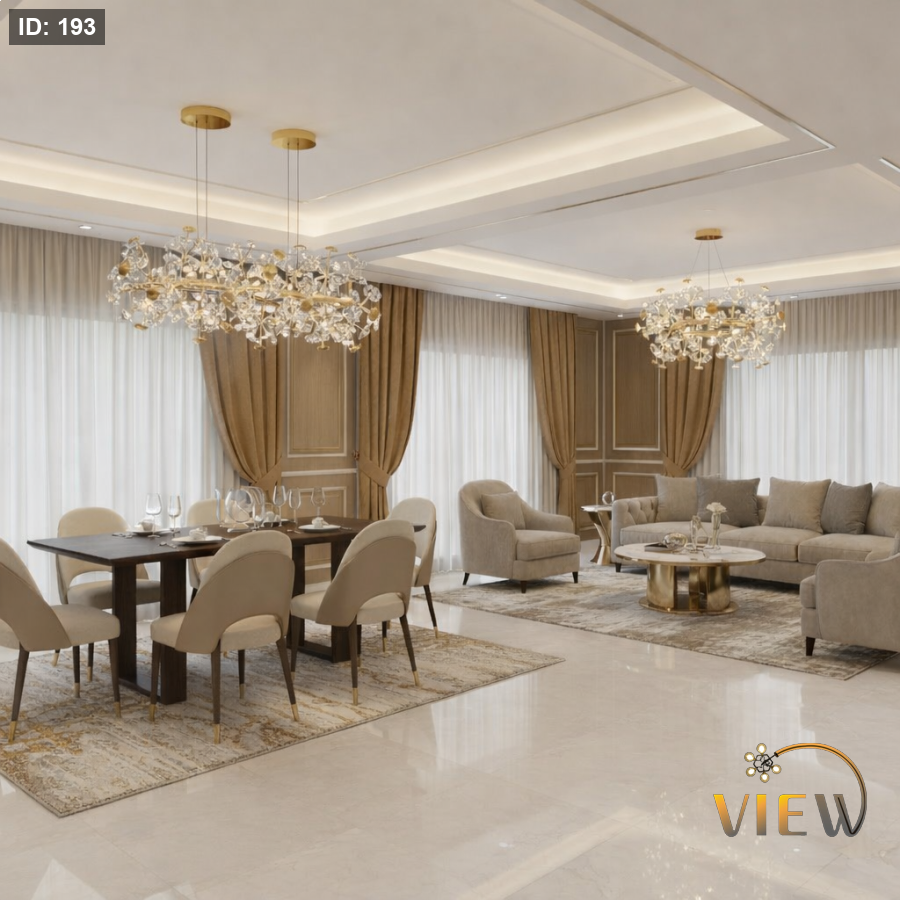 - في صالون مودرن–كلاسيك فوق جلسة مستطيلة أو على امتداد المساحة.