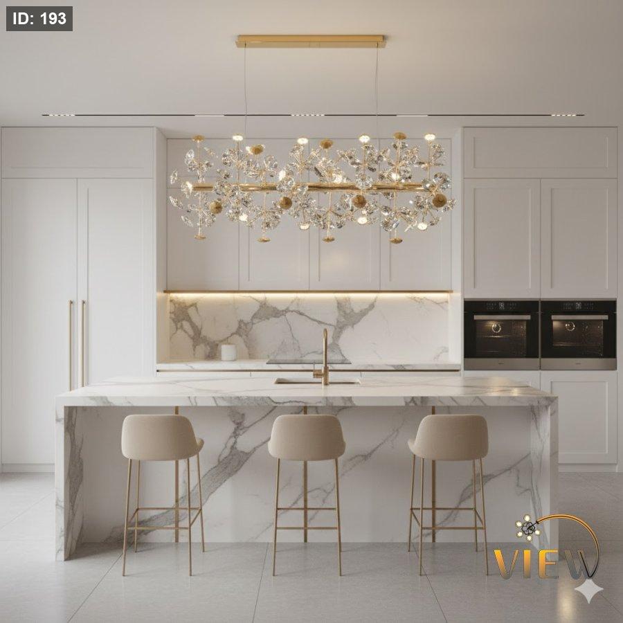 - فوق بار مطبخ فخم لإضاءة خطية جذابة.