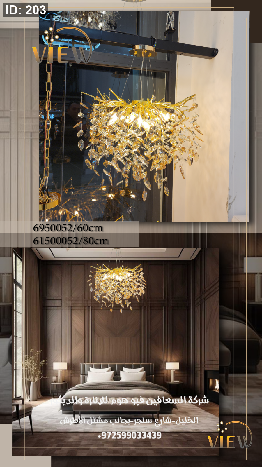 مادة الصنع: معدن(قاعدة لون ذهبي) + كريستال فخم(كريستالات عسلي و شفاف )
