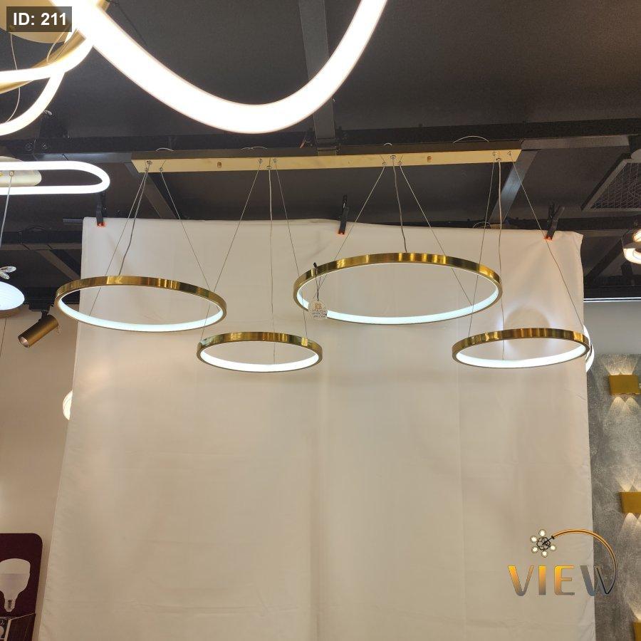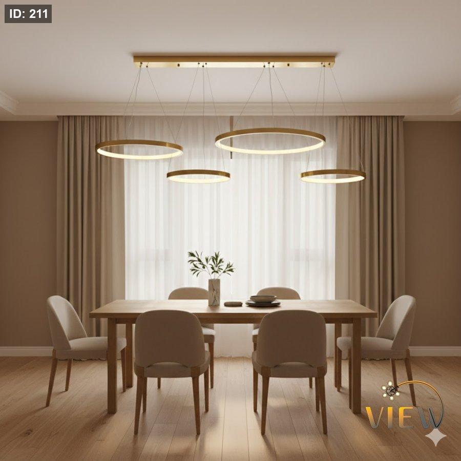 ثريا مدارات النور تتميّز بتصميم حلقات ذهبية معلّقة بانسياب يعكس فكرة الدوران والإحاطة، لتمنح المكان إضاءة موزعة بشكل متجانس وفاخر. تعمل بإضاءة LED ناعمة، وتناسب الديكورات الحديثة التي تبحث عن قطعة تجمع بين البساطة والش presence الفخم.
