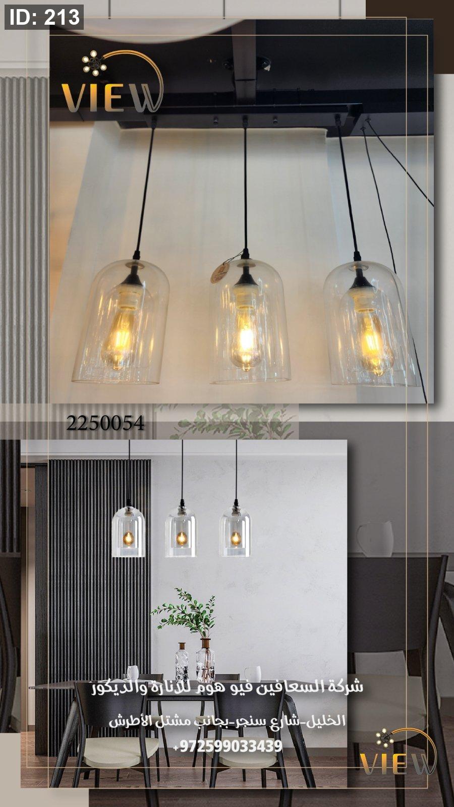 ثريا قبّة النور تتميّز بتصميم ثلاثي من الزجاج الشفاف الذي يأخذ شكل قُبّة ناعمة، تتدلّى منه لمبات دافئة تمنح إحساسًا بالراحة والأناقة. مزيج السلك الأسود مع الزجاج الشفّاف يقدّم أسلوب مودرن بسيط (Minimal Modern) يناسب أحدث اتجاهات الديكور.
