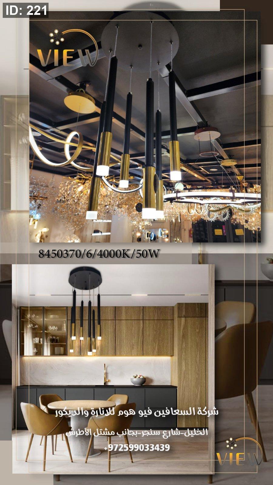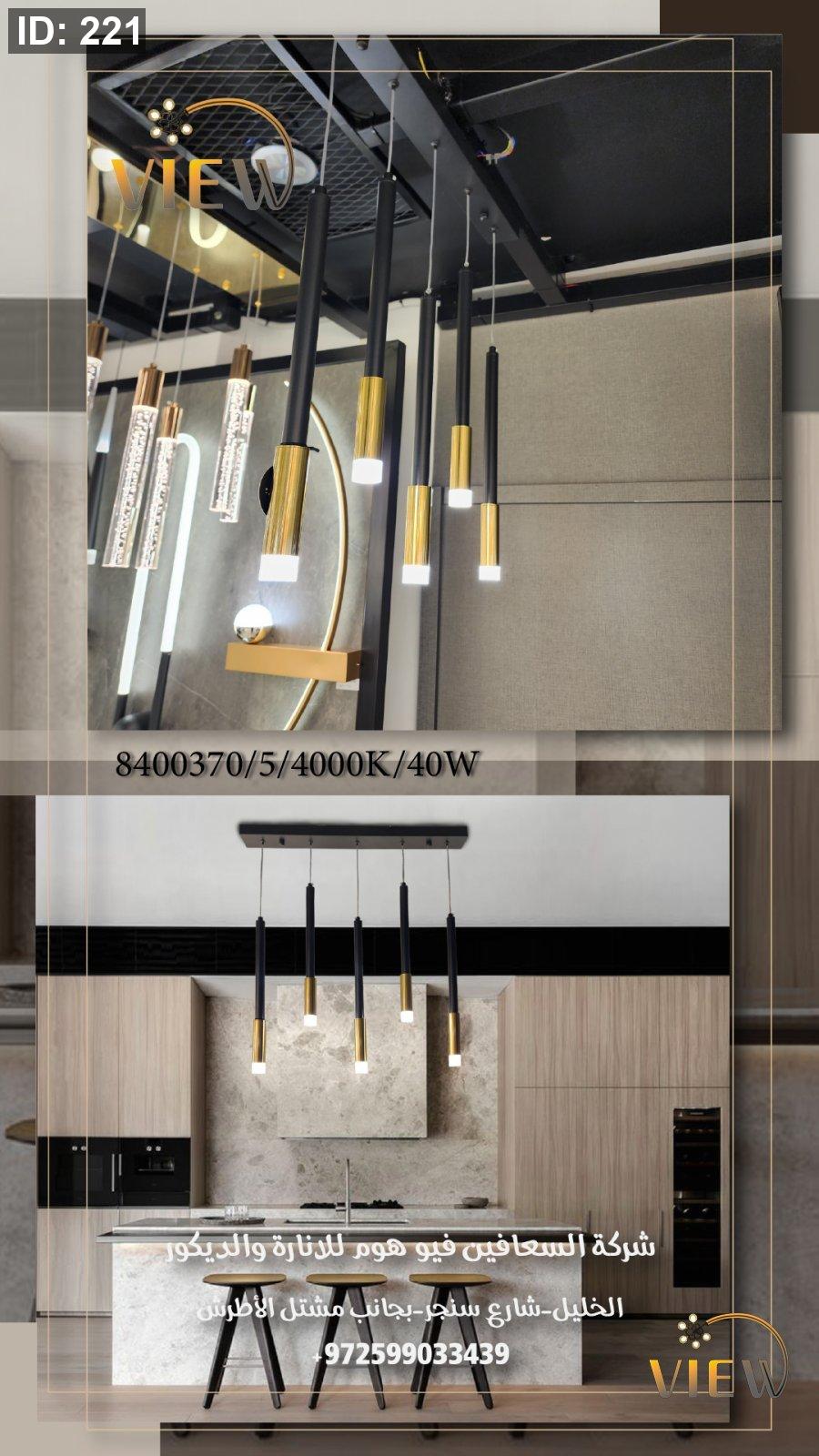 الإضاءة تنزل بخطوط مستقيمة تمنح المكان طابعاً هندسياً راقياً، وتوزيعها العمودي يضيف عمقاً بصرياً وأناقة معاصرة لأي مساحة.