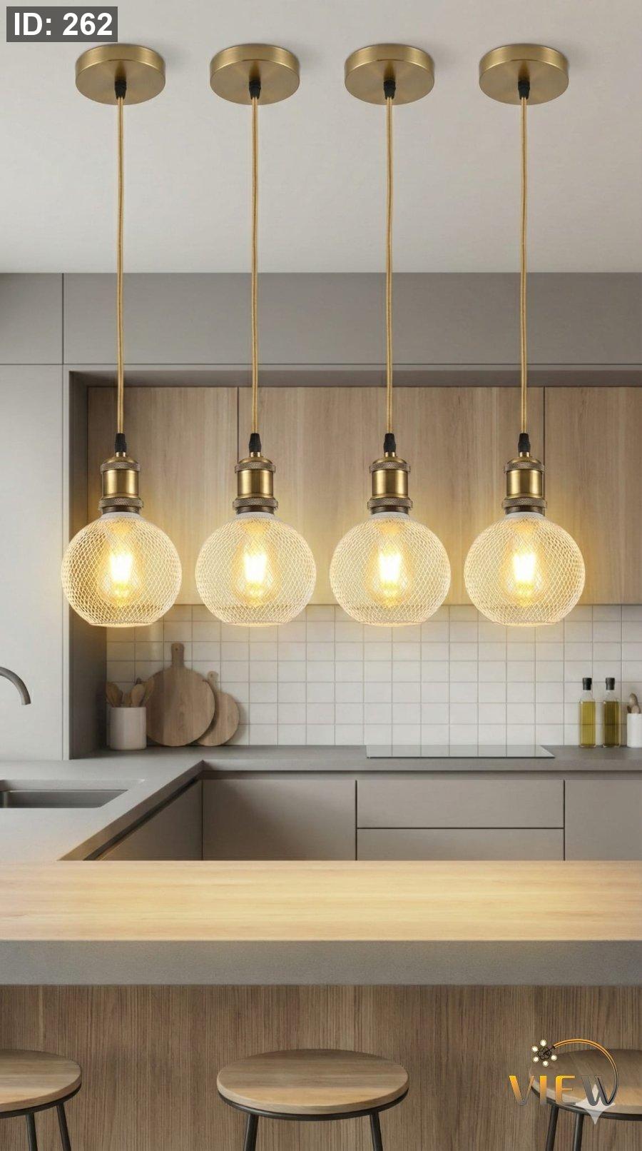 - فوق جزيرة المطبخ كصفّ من 3–4 وحدات.