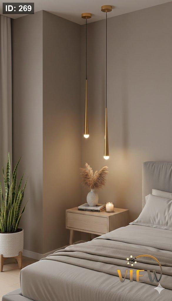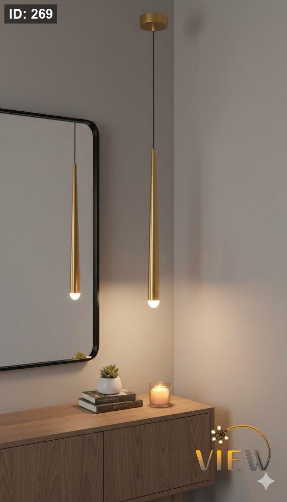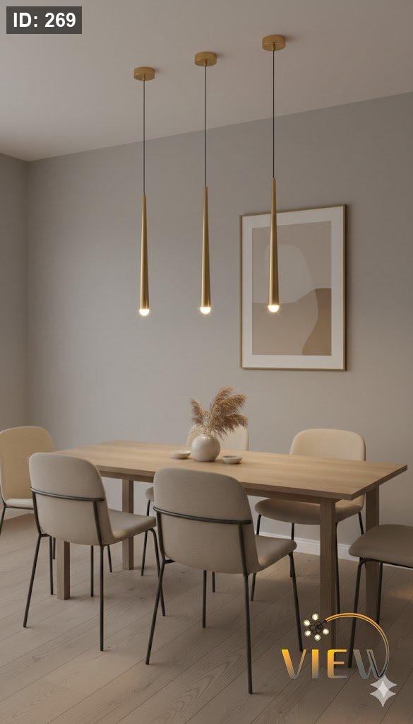 معلقة انسياب الذهب تتميّز بتصميم طويل ورفيع بلمسة ذهبية مطفية، تمنح المكان شعوراً بالفخامة الهادئة.