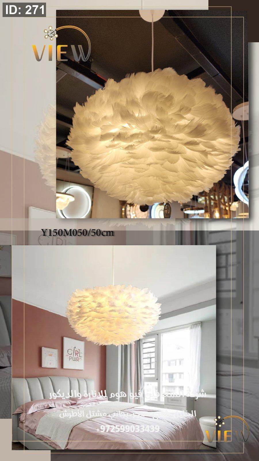 تصميمها المستوحى من شكل الغيمة، مع ريش صناعي عالي الجودة يوزّع الضوء بشكل لطيف وهادئ، يجعلها خياراً مثالياً للأجواء الدافئة والديكور الهادئ.