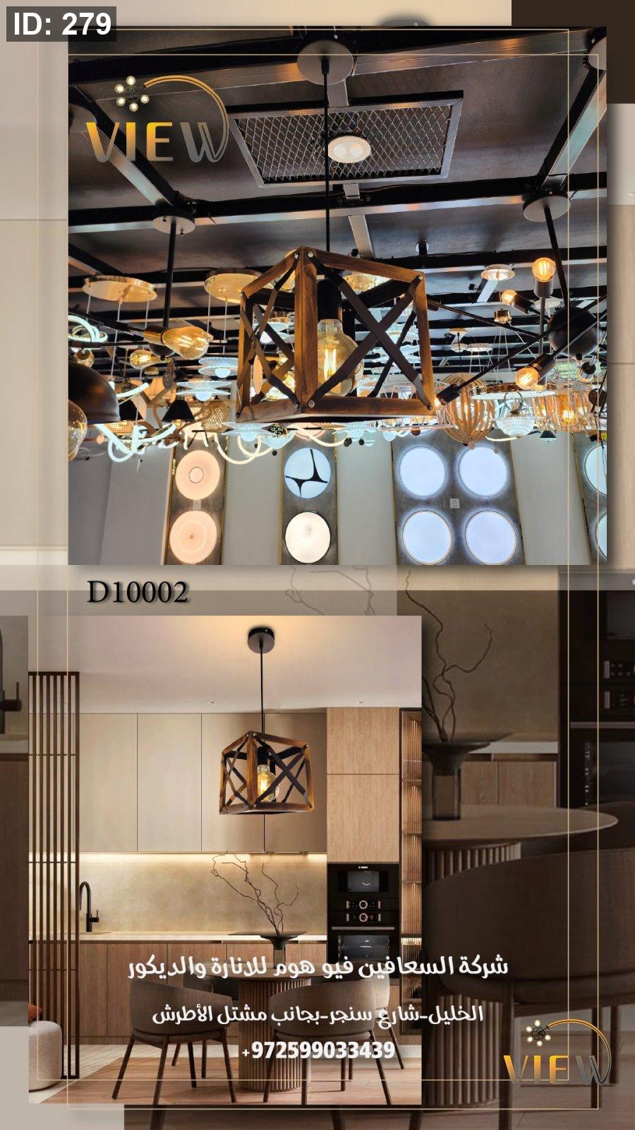 ثريّا بتصميم مكعّب عصري بتقاطعات هندسية جذابة، تمنح المكان إضاءة دافئة ومظهرًا فنيًا مميزًا. خامتها المعدنية المعالجة تعطي إيحاءً بنقشة الخشب دون أن تكون خشبية فعليًا، مما يجعلها مناسبة للديكورات الحديثة والريفية على حدّ سواء.