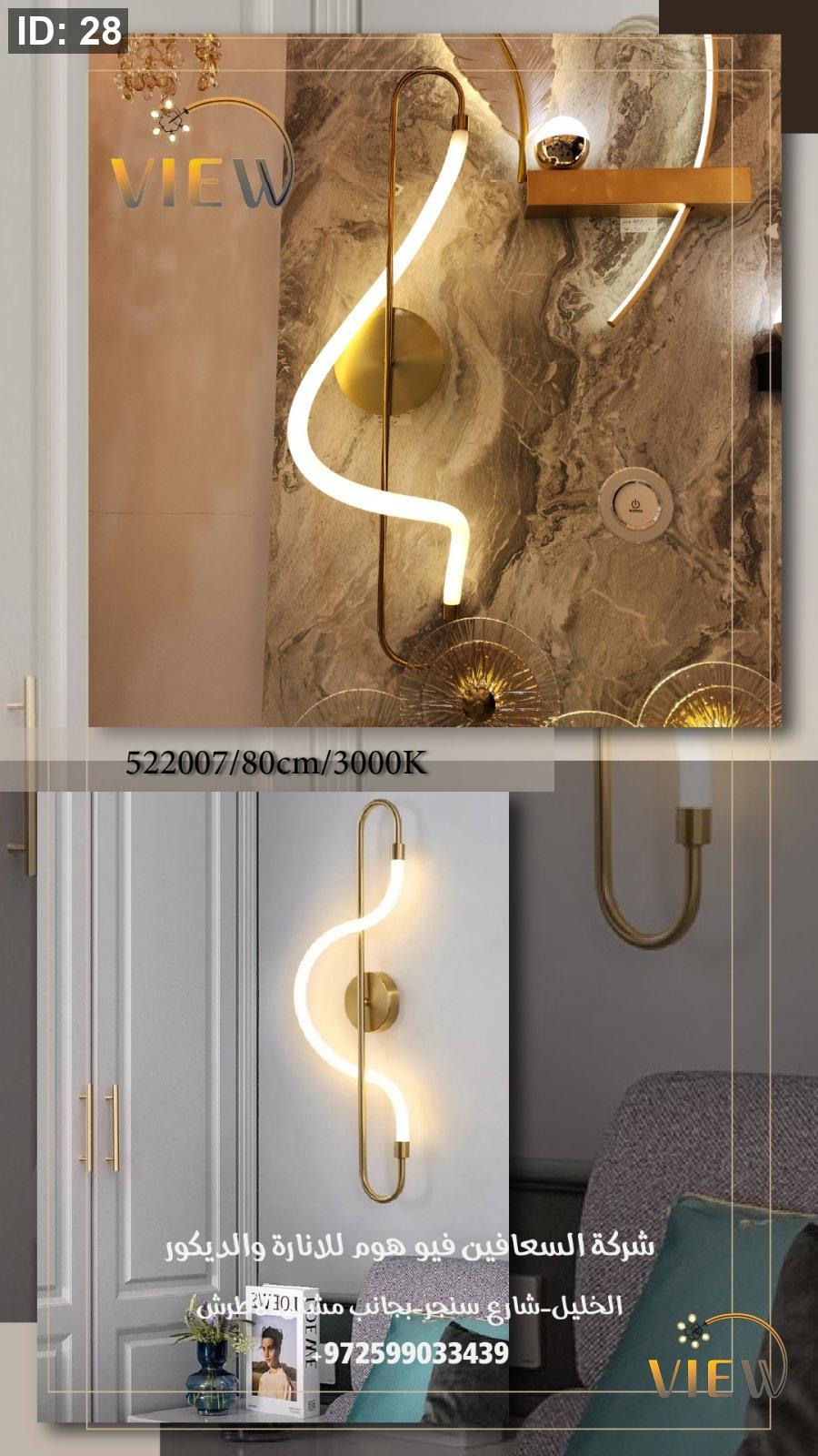 إنارة جدارية بتصميم انسيابي عصري، تشكّل خطًا ضوئيًا ناعمًا ينساب على الجدار ويمنح المكان إضاءة هادئة ولمسة فنية راقية. مناسبة للمساحات الحديثة وتضفي إحساسًا بالدفء والأناقة.