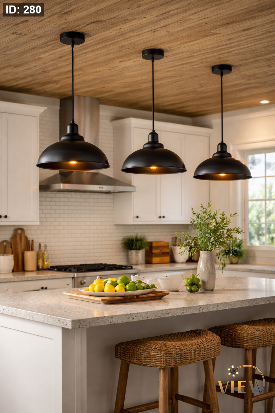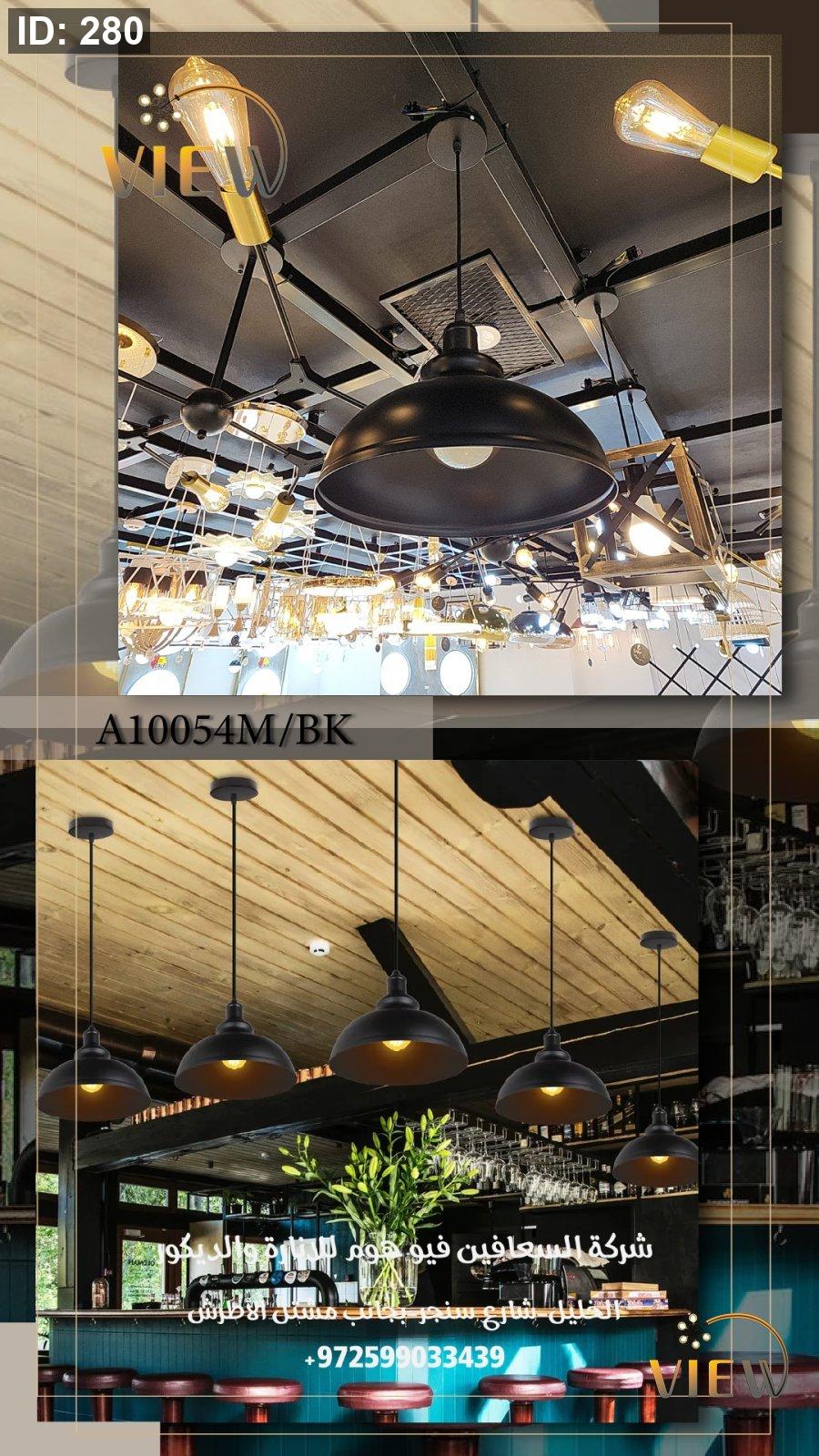 معلقة بتصميم قبّة معدنية باللون الأسود المطفي، تمنح المكان طابعًا صناعيًا عصريًا مع ضوء دافئ ينساب بانسيابية نحو الأسفل.
