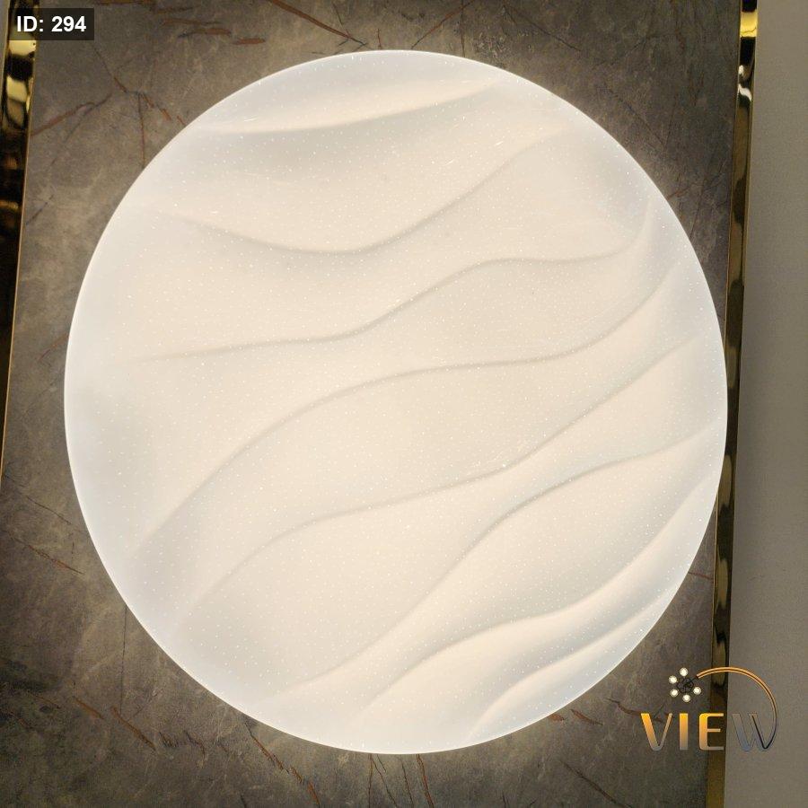 جلوب سقفي مودرن، يتميز بواجهة بيضاء ناعمة مع نقاط مضيئة تعطي تأثير النجوم بطريقة بسيطة وأنيقة.