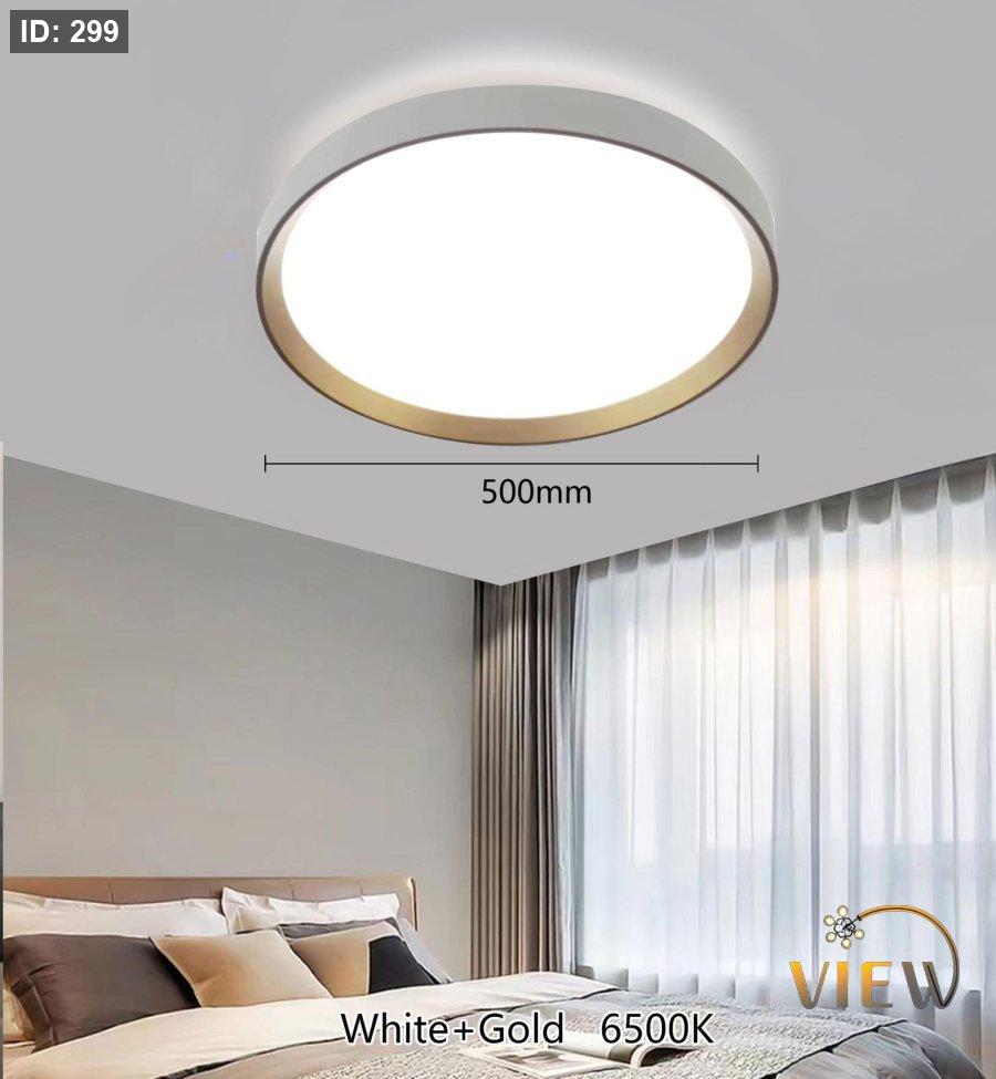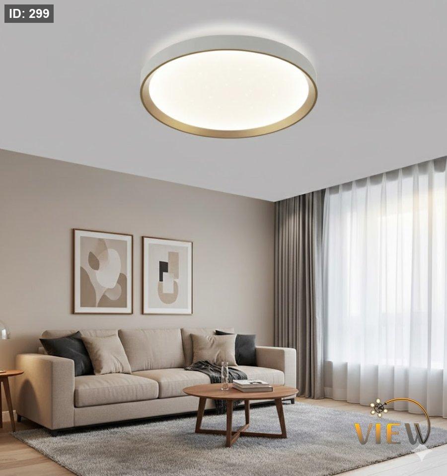 جلوب ليد دائري مسطّح بلون أبيض نقي مع إطار ذهبي أنيق، يوفّر إضاءة قوية وواضحة 6500K وتوزيع ضوء متجانس. تصميم مودرن بقطر 50 سم يمنح السقف لمسة فخامة وبساطة في نفس الوقت. ✨
