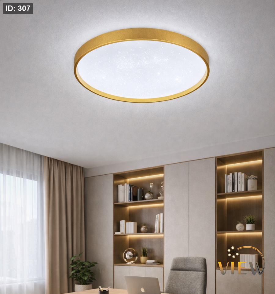 جلوب سقفي مودرن بتصميم دائري أنيق، يتميّز بإطار ذهبي فخم يضيف لمسة راقية وعصرية للمكان.