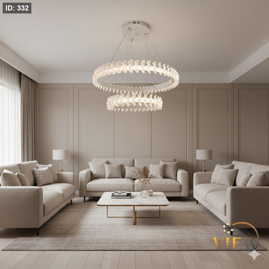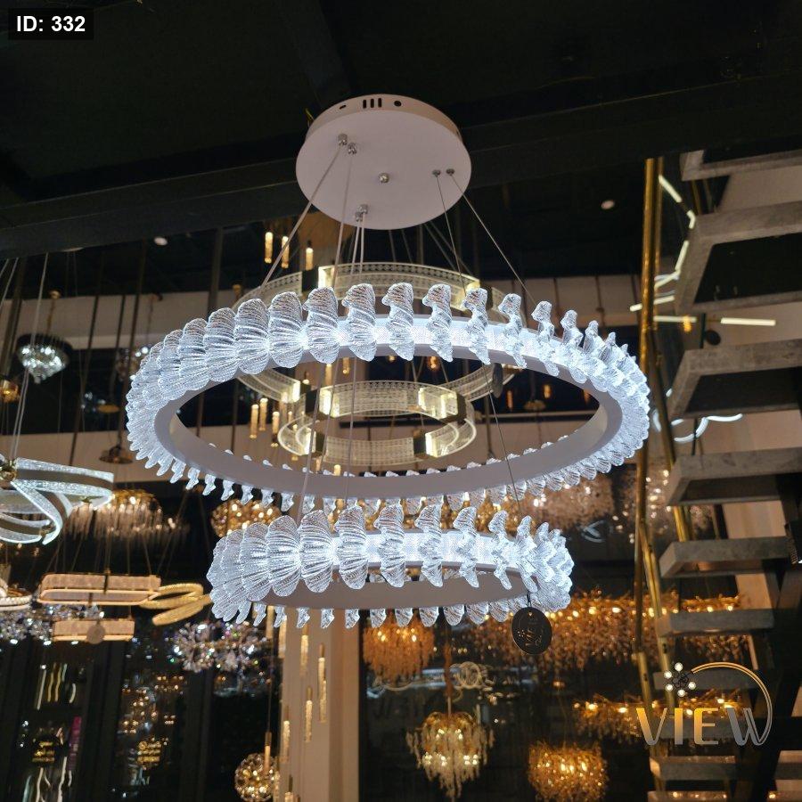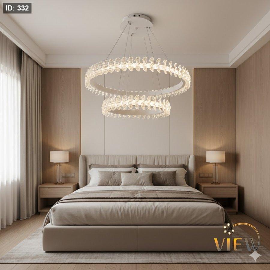 ثريّا مودرن بتصميم دائري مزدوج يجمع بين الاكريليك الشفاف والإضاءة الدافئة، تمنح المكان إحساساً بالهدوء والفخامة في آنٍ واحد. توزيع الضوء متوازن وناعم، مثالي للمساحات التي تحتاج إضاءة راقية دون إزعاج بصري، مع حضور أنيق يلفت الانتباه بدون مبالغة.