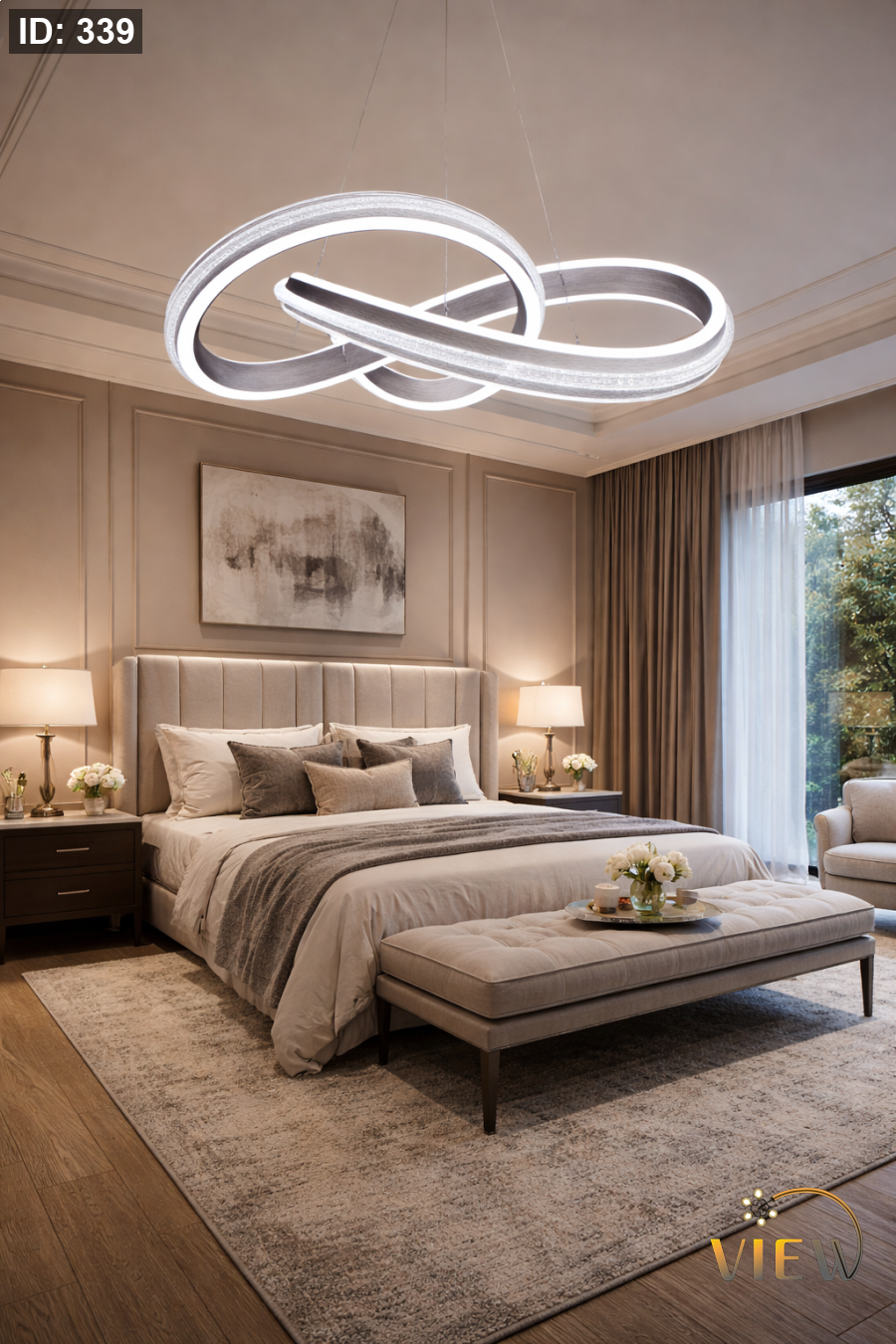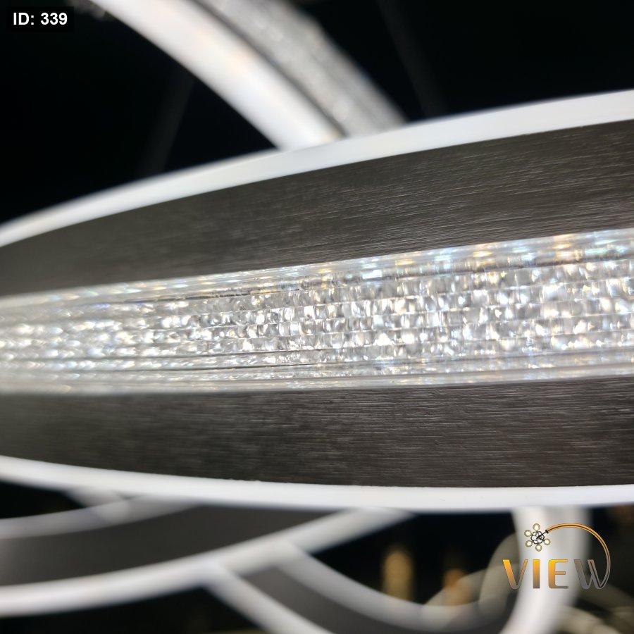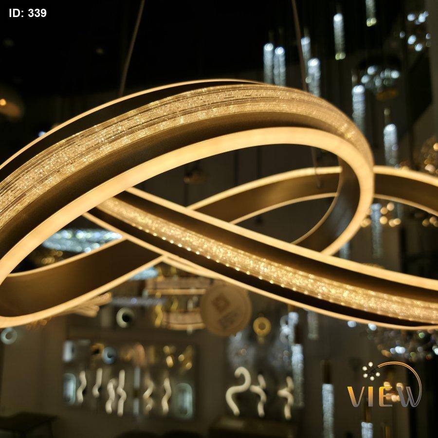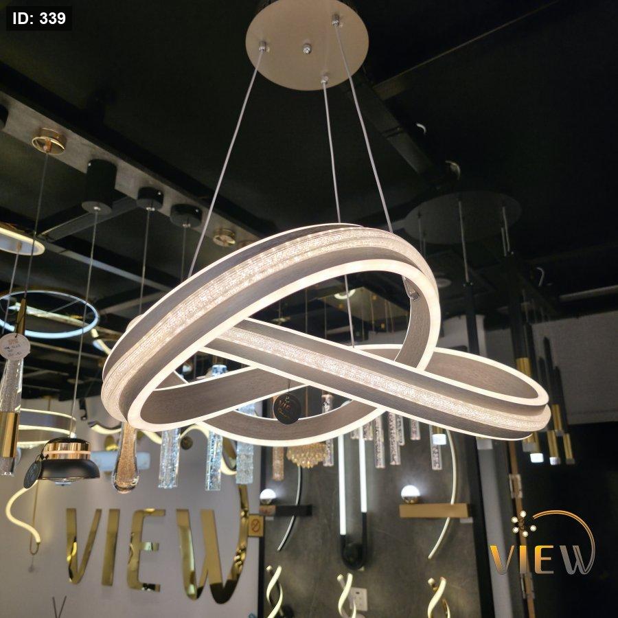 ثريا مودرن بتصميم مستوحى من رمز اللانهاية، تتكوّن من حلقات متداخلة بإطار معدني أنيق مع إضاءة LED محيطية ناعمة.