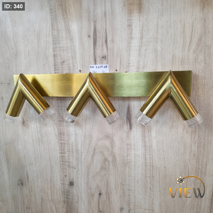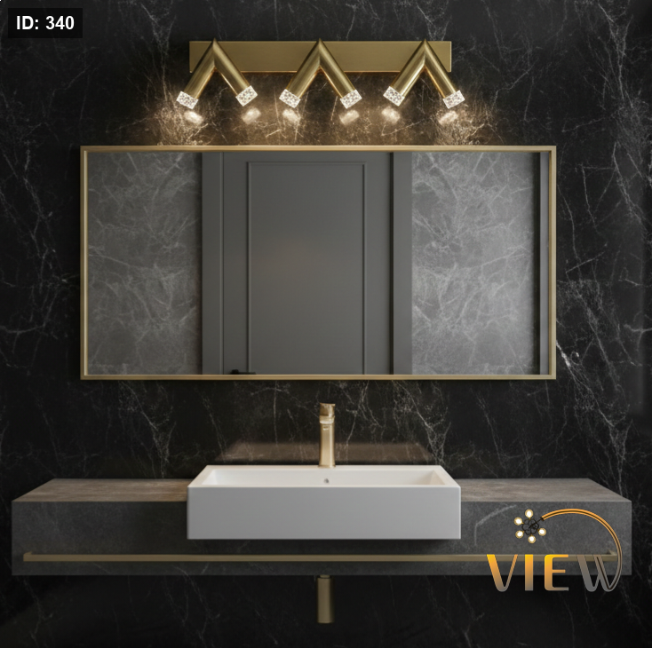 إنارة مغسلة بتصميم هندسي مميز مكوّنة من ثلاث أذرع على شكل قمم متناسقة (V مقلوب)، مثبتة على قاعدة مستقيمة أنيقة.