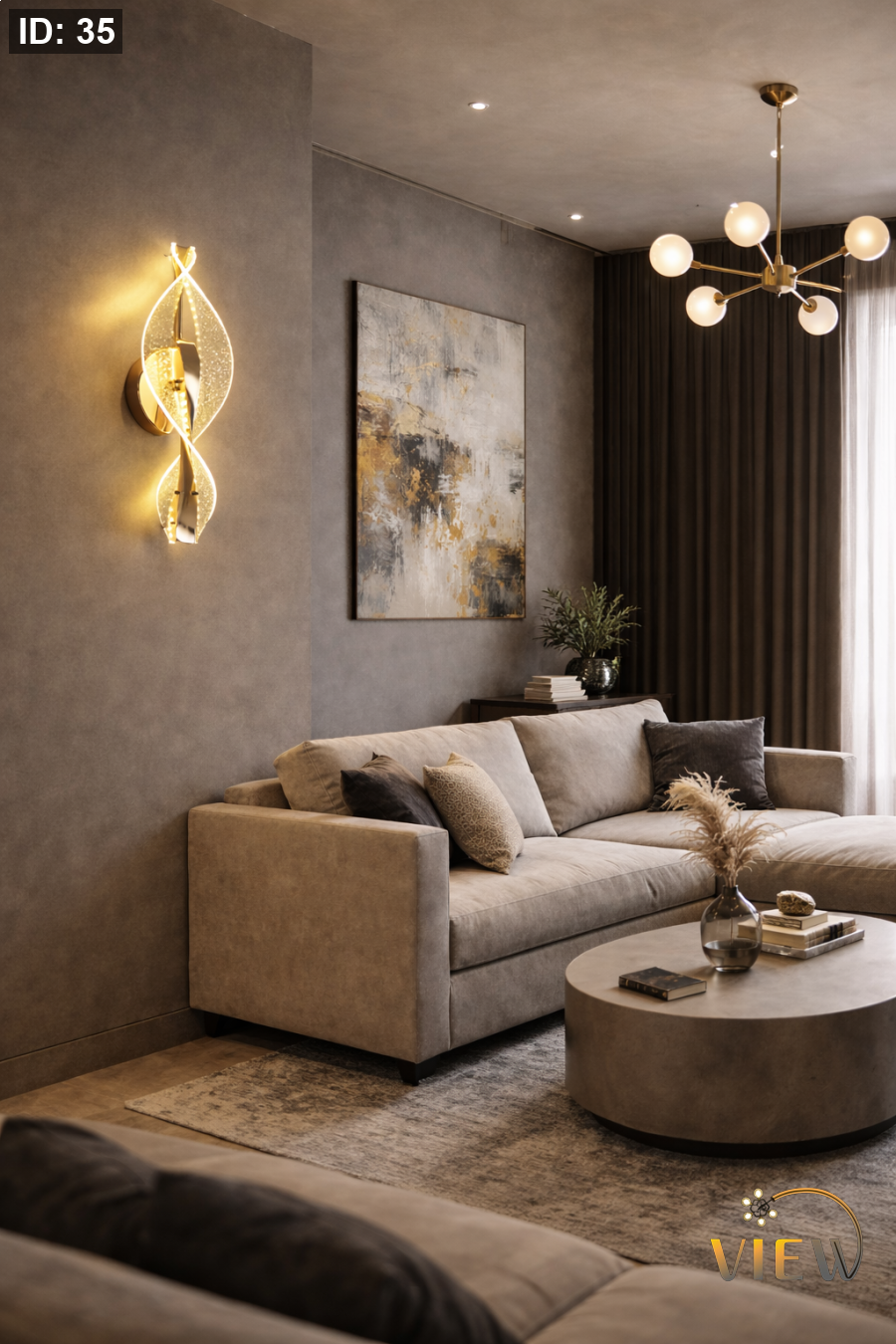 إنارة وهج بتصميم انسيابي ناعم ولمسة عصرية فاخرة، تنشر ضوءًا دافئًا يبرز جمال الجدار ويمنح المكان إحساسًا بالهدوء والرقي، مثالية للمساحات الحديثة والنيوكلاسيك.