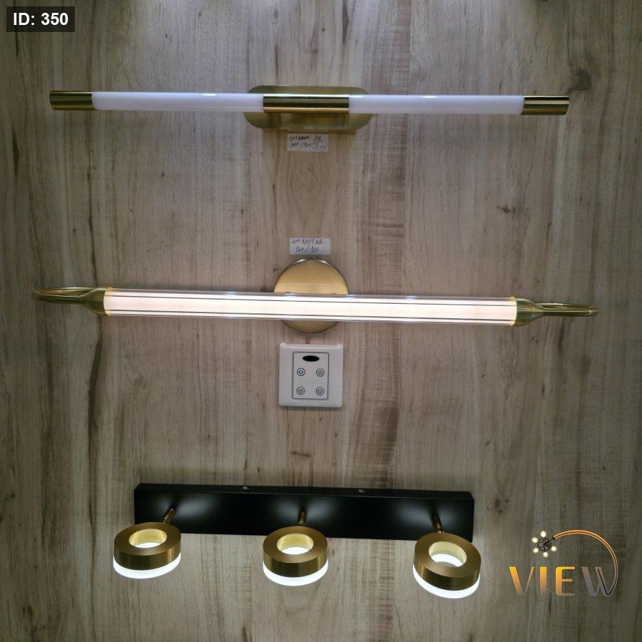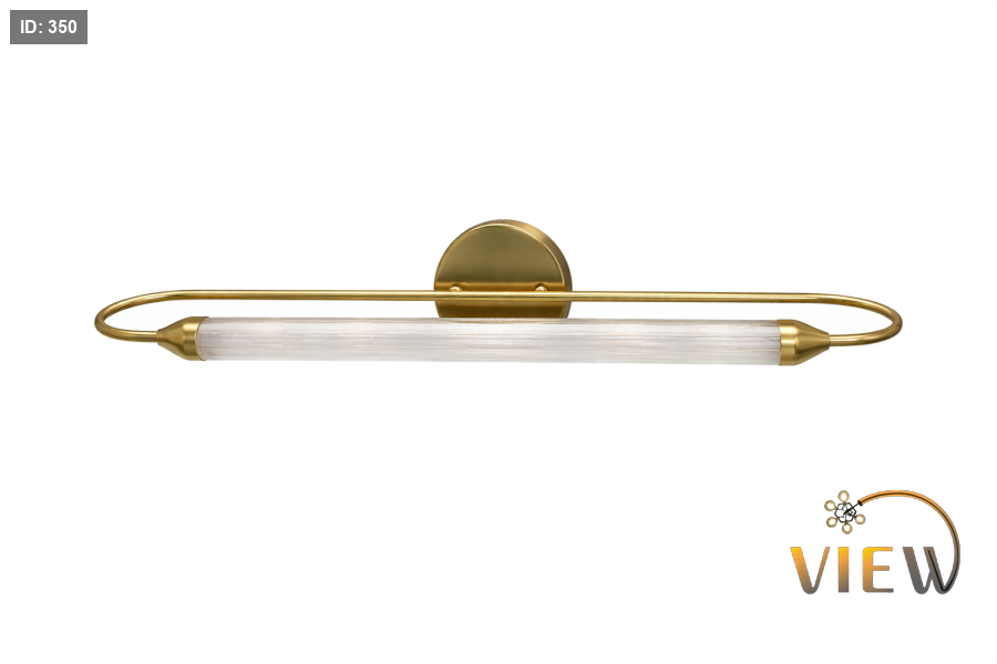 إنارة مغسلة مودرن بتصميم أفقي أنيق، تجمع بين أنبوب إضاءة أبيض ناعم وهيكل ذهبي بإطار جانبي انسيابي مميز يمنحها حضوراً راقياً فوق المرآة.