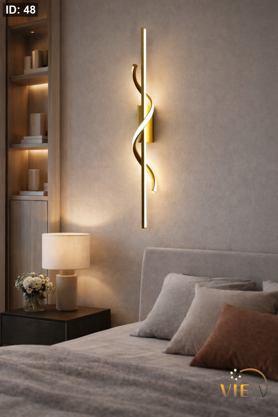 إنارة جدارية بتصميم عمودي حلزوني أنيق، تجمع بين الخط المستقيم والالتواء الناعم لتخلق توازنًا بصريًا فريدًا. تتميّز بإضاءة LED هادئة تنبع بانسيابية وتمنح المكان عمقًا ودفئًا دون إبهار، ما يجعلها قطعة ديكور فنية تضيف شخصية راقية للمساحات الحديثة.