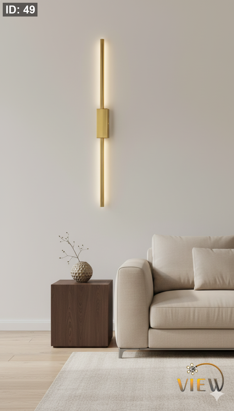 إنارة جدارية خطّية بتصميم ذهبي أنيق، تعتمد على إضاءة LED خلفية ناعمة تمنح الجدار عمقًا وهدوءًا بصريًا. قطعة مثالية لإضافة لمسة فخامة عصرية دون مبالغة، وتنسجم مع المساحات الراقية والبسيطة.