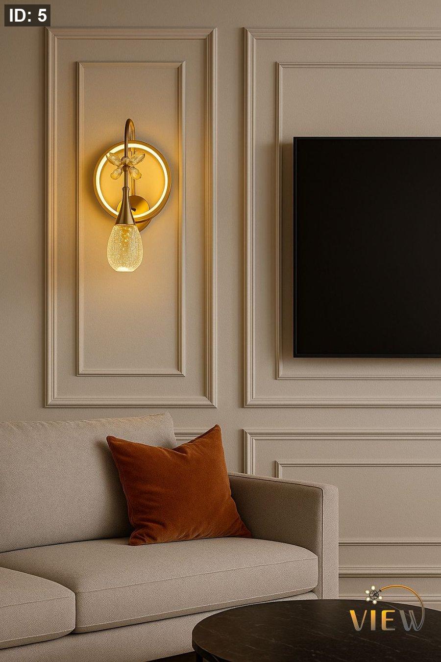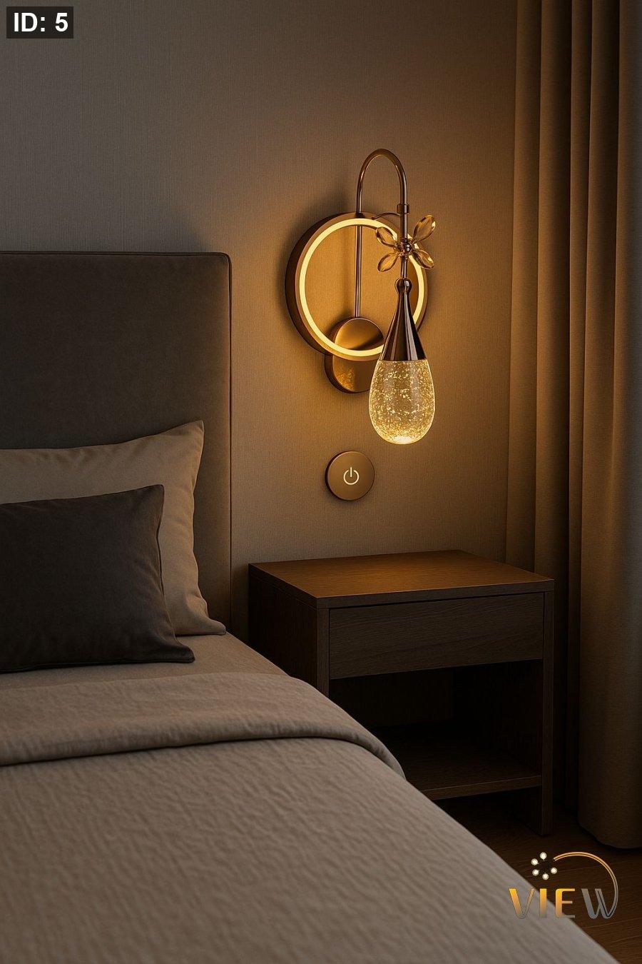 إنارة فاخرة بتصميم دائري وزهرة كريستال مع قطرة مضيئة،