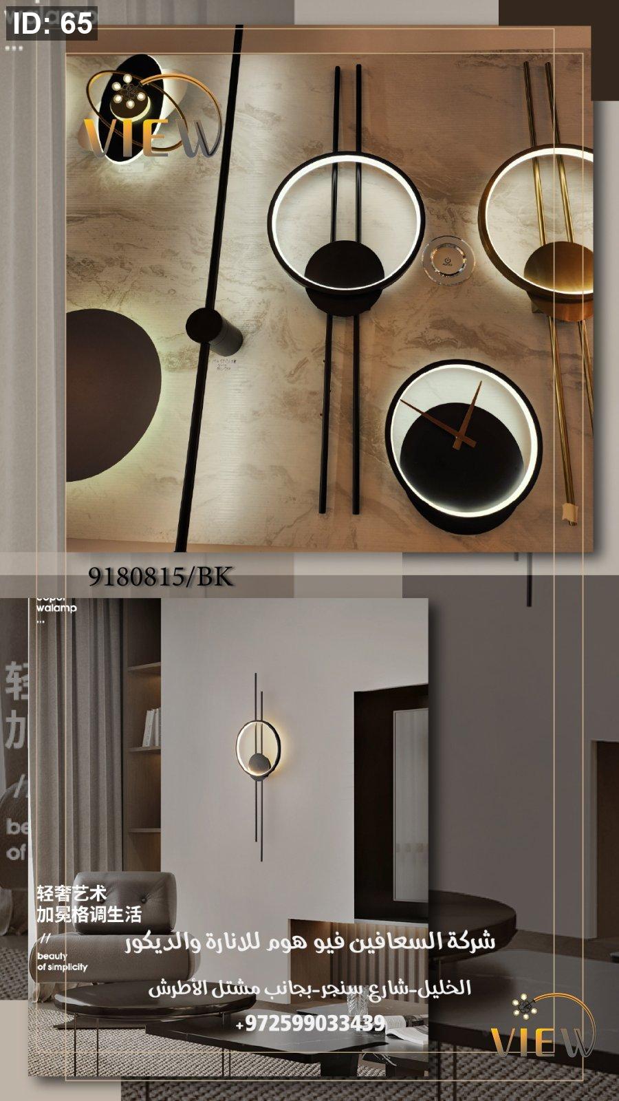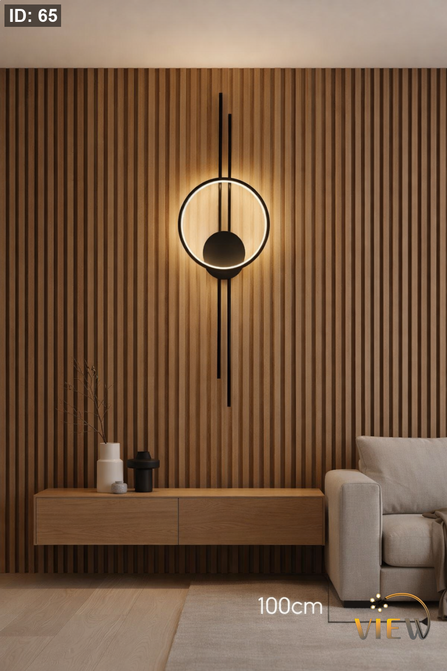 إنارة جدارية مودرن بتصميم دائري متوازن، تجمع بين الخطوط الهندسية الناعمة والإضاءة الهادئة.