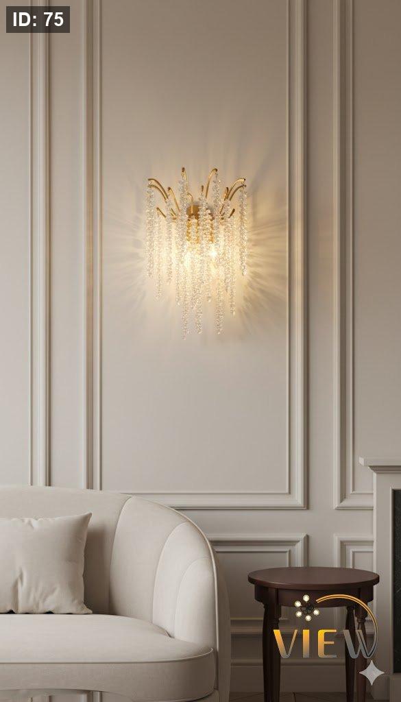 ثريا أنيقة بتصميم عناقيد كريستالية متدلّية، تعكس الضوء بانسيابية وتمنح المكان إحساسًا بالفخامة والرقي. تتداخل حبات الكريستال الشفافة مع الهيكل المعدني الذهبي لتخلق مشهدًا ضوئيًا دافئًا يلفت الأنظار دون مبالغة، مثالية لمحبي الذوق الكلاسيكي الراقي.