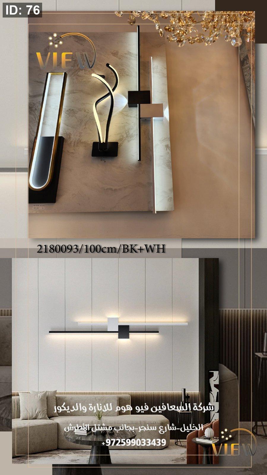 إنارة جدارية مودرن بتصميم خطّي أفقي يجمع بين اللونين الأسود والأبيض، مع إضاءة LED غير مباشرة تمنح الجدار عمقًا وأناقة هادئة. قطعة تصميمية مثالية لإبراز الجدران الحديثة وإضافة لمسة عصرية دون مبالغة.