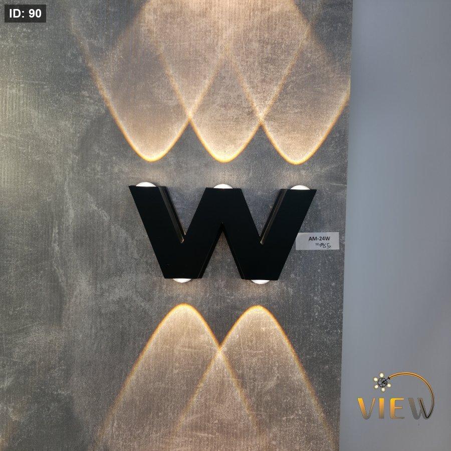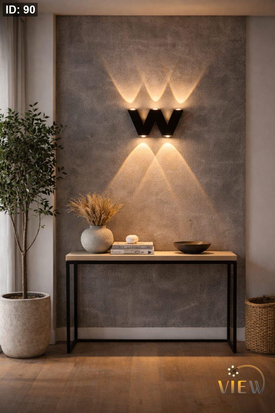 إنارة جدارية مودرن بتصميم هندسي مميز على شكل حرف W، توزع الضوء للأعلى والأسفل بأسلوب فني يضفي عمقاً وأناقة على الجدار.